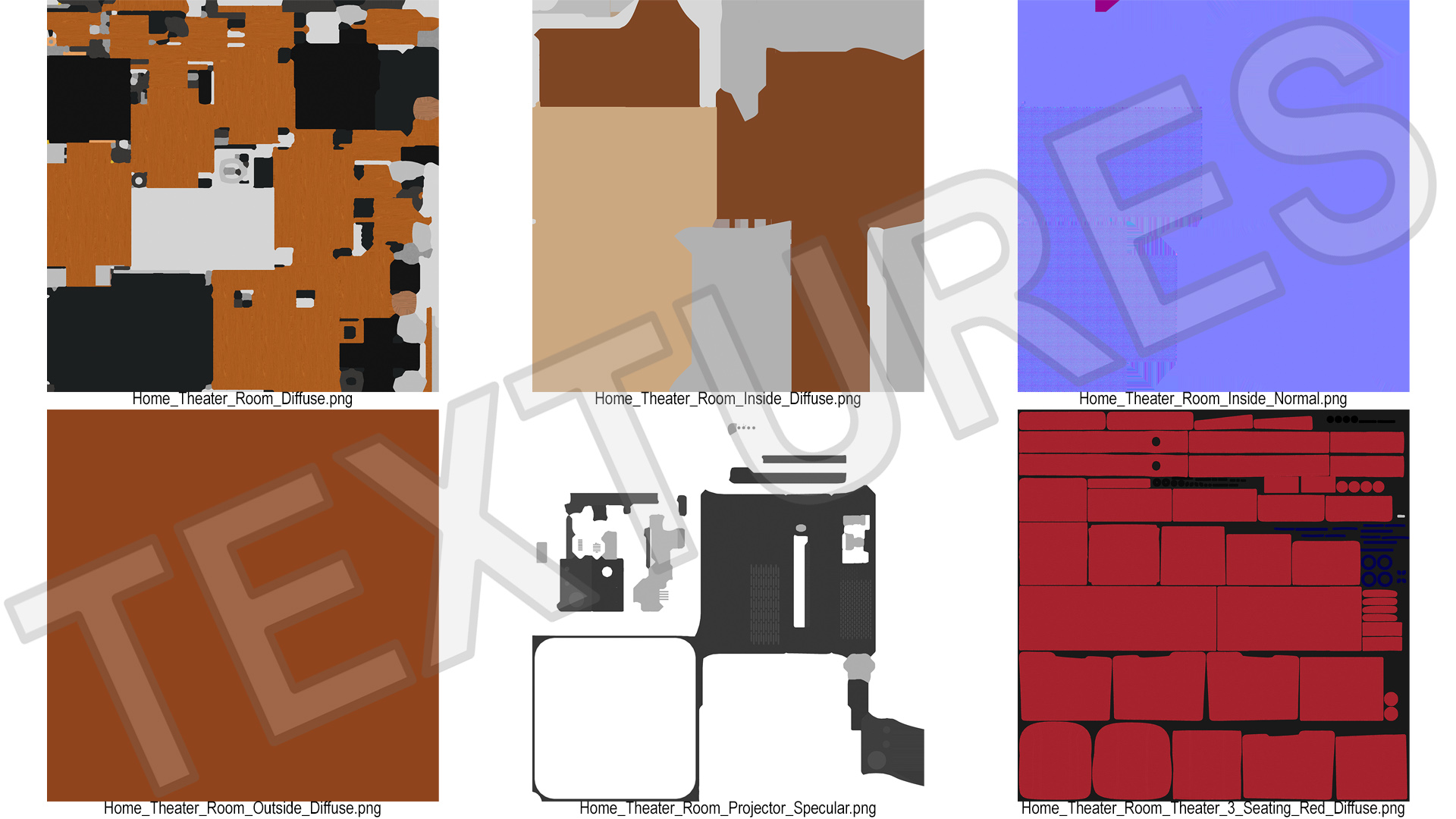 Home Theater Room is a high quality, photo real 3d model that will enhance detail and realism to any of your rendering projects. The model has a fully textured, detailed design that allows for close-up renders, and was originally modeled in 3ds Max 2020 and rendered with V-Ray. Renders have no postprocessing!