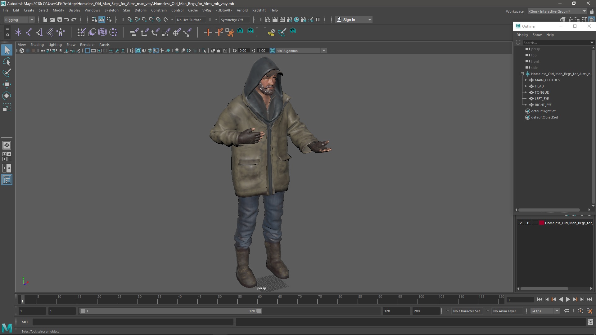 Homeless Old Man Begs for Alms is a high quality, photo real 3d model that will enhance detail and realism to any of your rendering projects. The model has a fully textured, detailed design that allows for close-up renders, and was originally modeled in 3ds Max 2020 and rendered with V-Ray. Renders have no postprocessing!