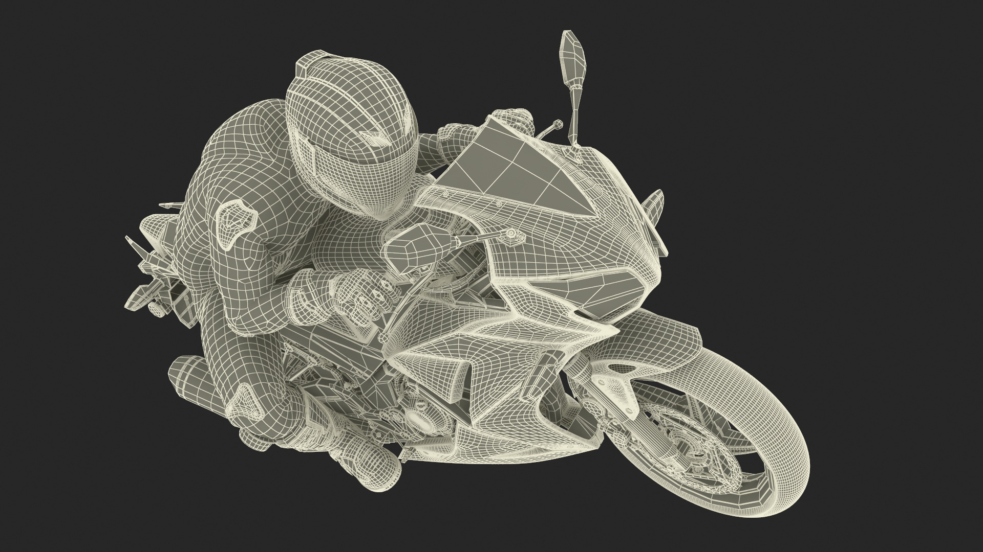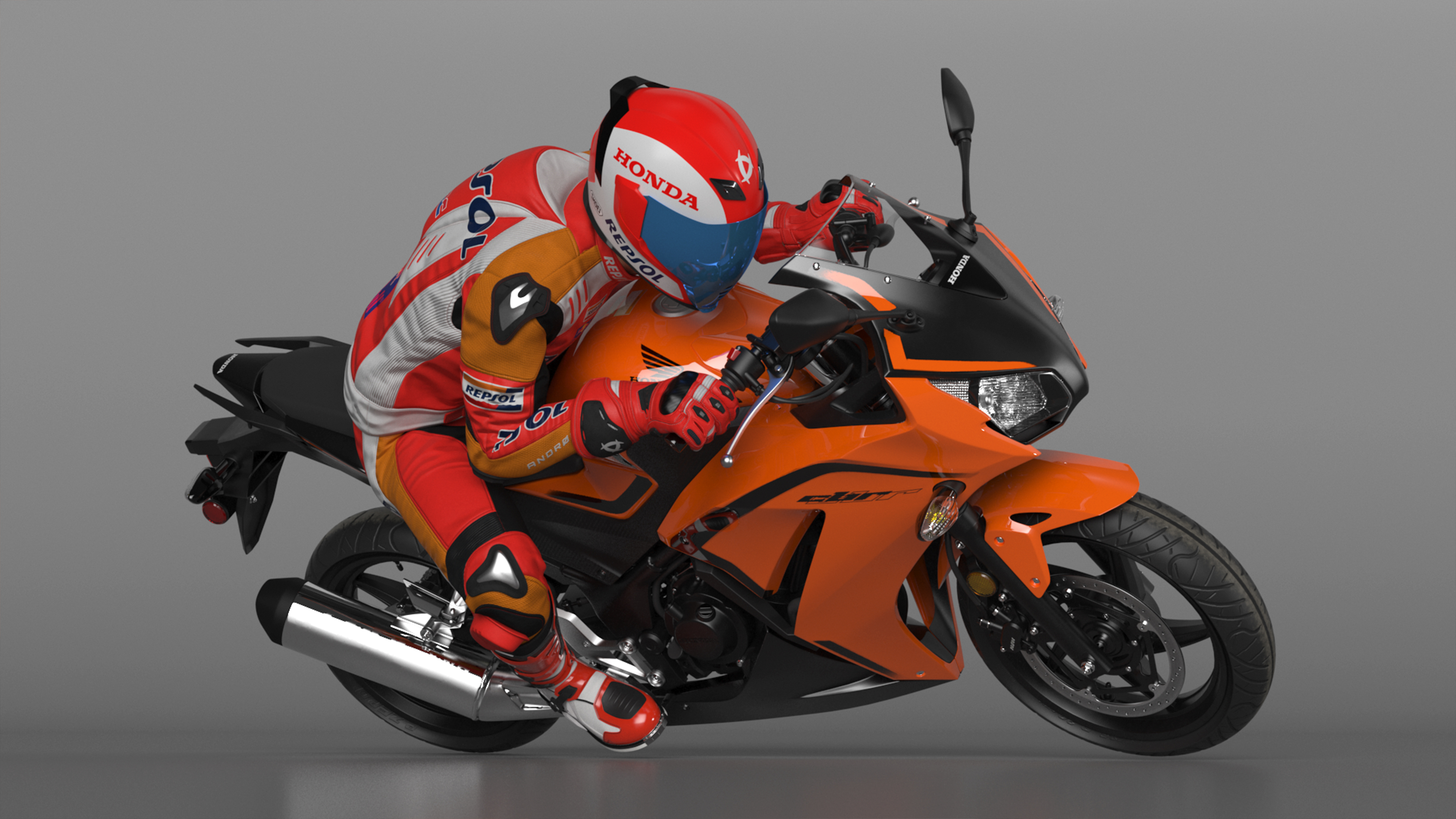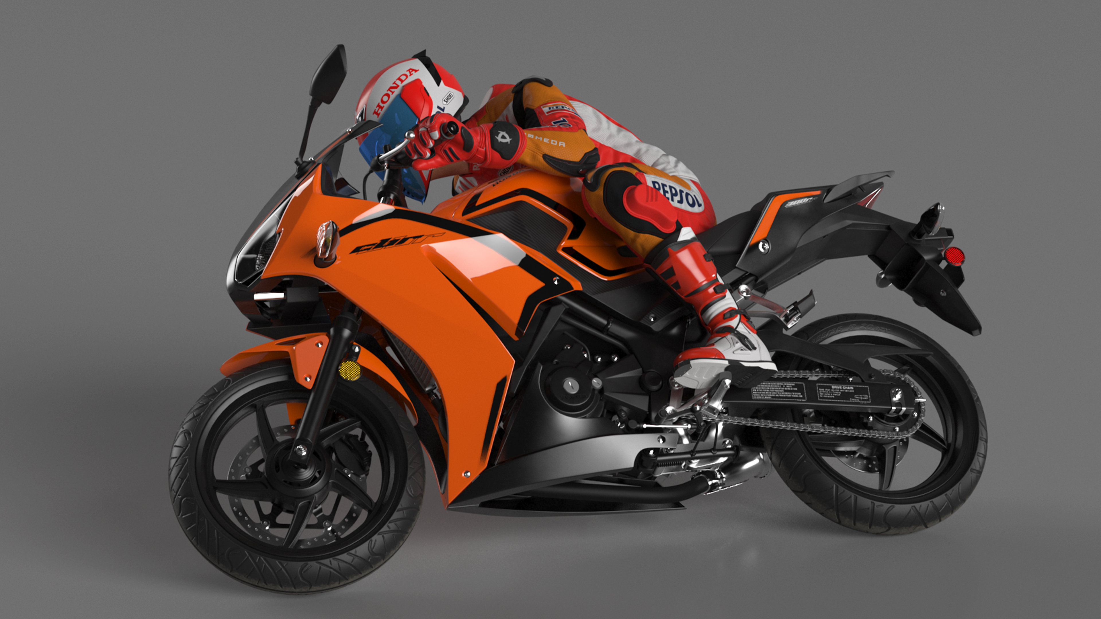Honda Motorcycle with Rider Turning is a high quality, photo real 3d model that will enhance detail and realism to any of your rendering projects. The model has a fully textured, detailed design that allows for close-up renders, and was originally modeled in 3ds Max 2020 and rendered with V-Ray. Renders have no postprocessing!