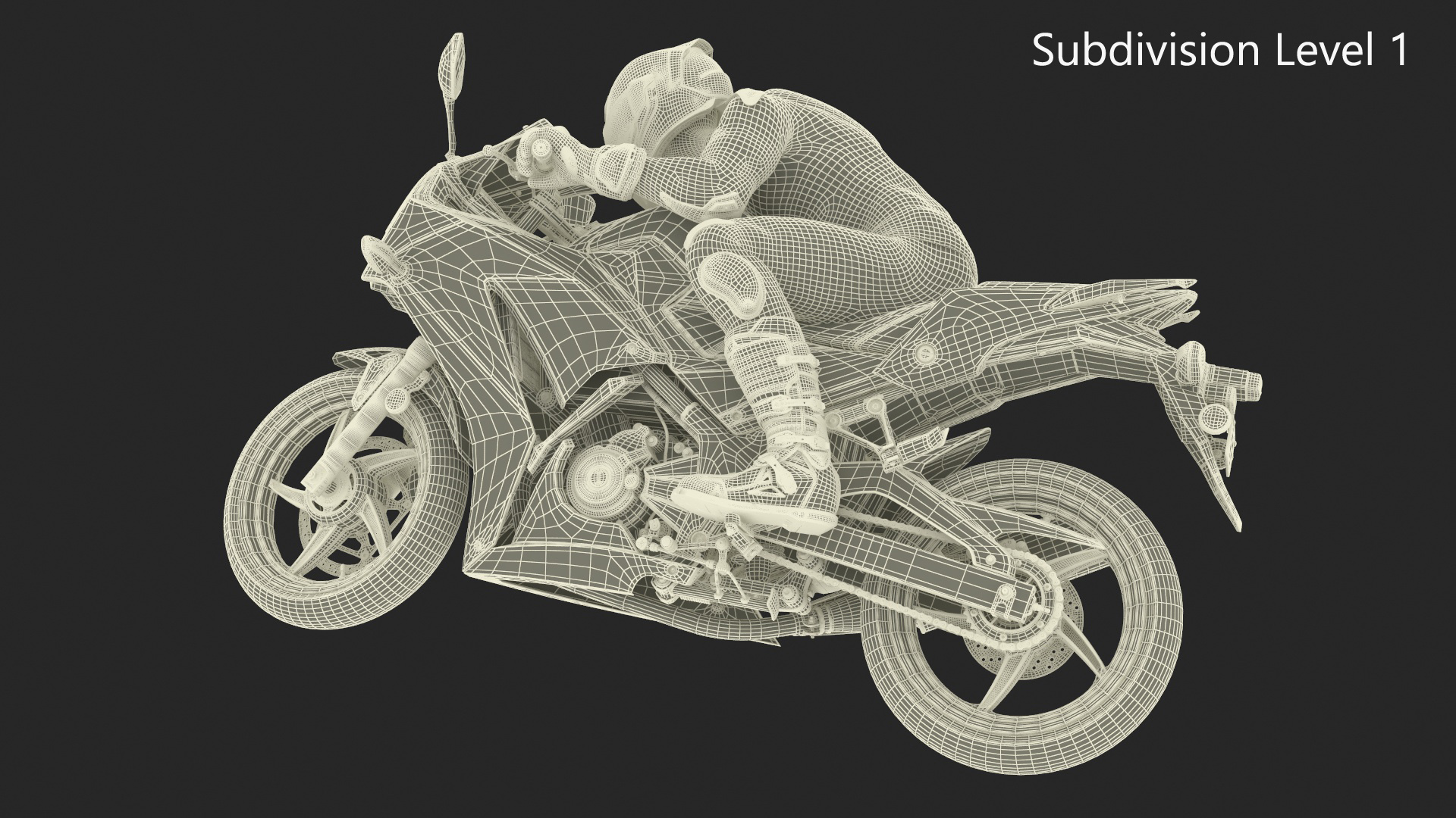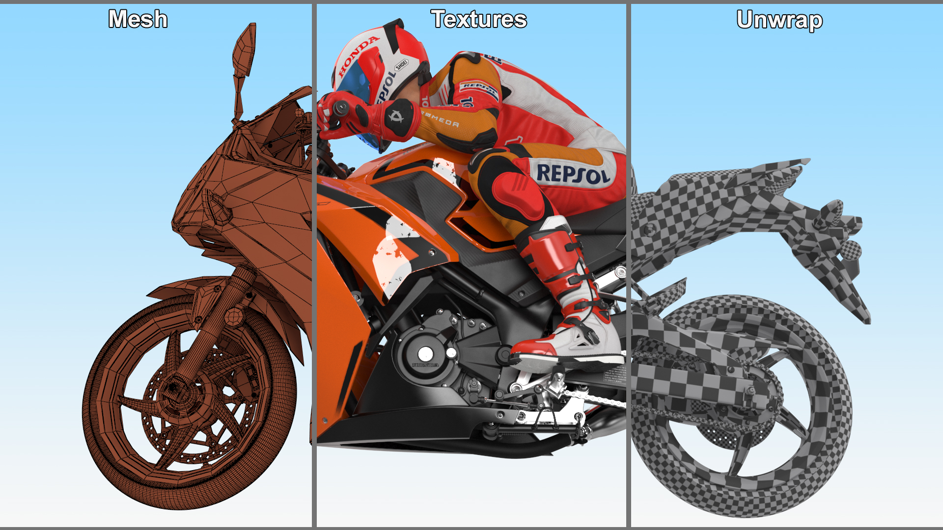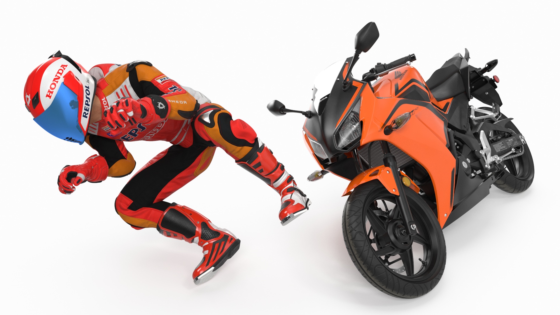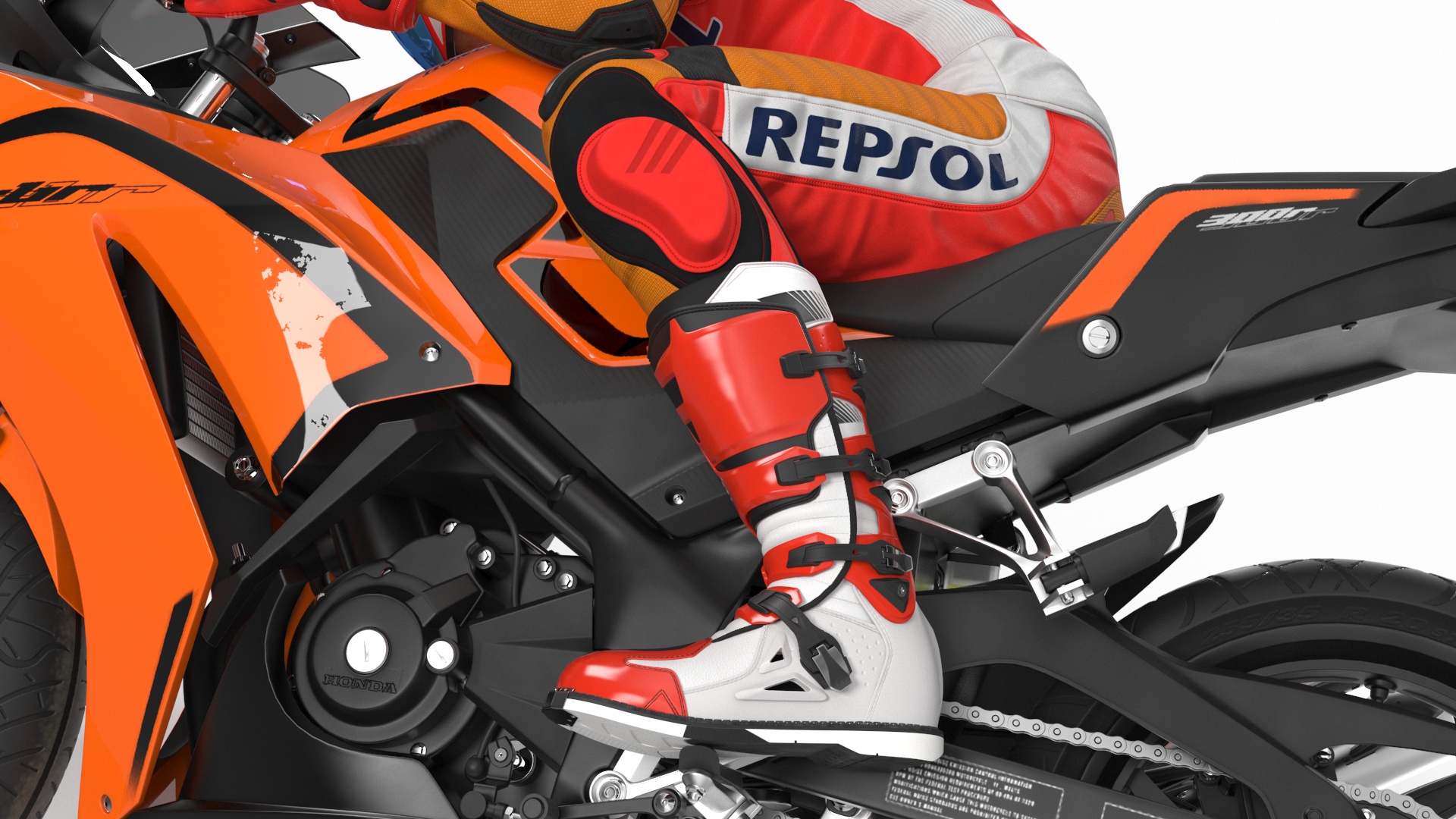 Honda Motorcycle with Rider Turning is a high quality, photo real 3d model that will enhance detail and realism to any of your rendering projects. The model has a fully textured, detailed design that allows for close-up renders, and was originally modeled in 3ds Max 2020 and rendered with V-Ray. Renders have no postprocessing!