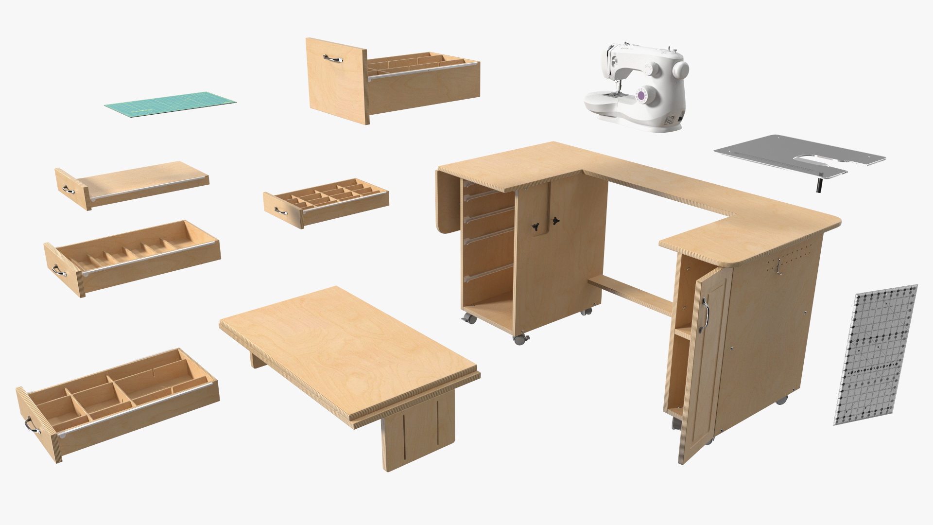 Horn Elements Sewing Table Unit Rigged is a 3d model of versatile and functional piece of furniture designed specifically for sewing tasks.