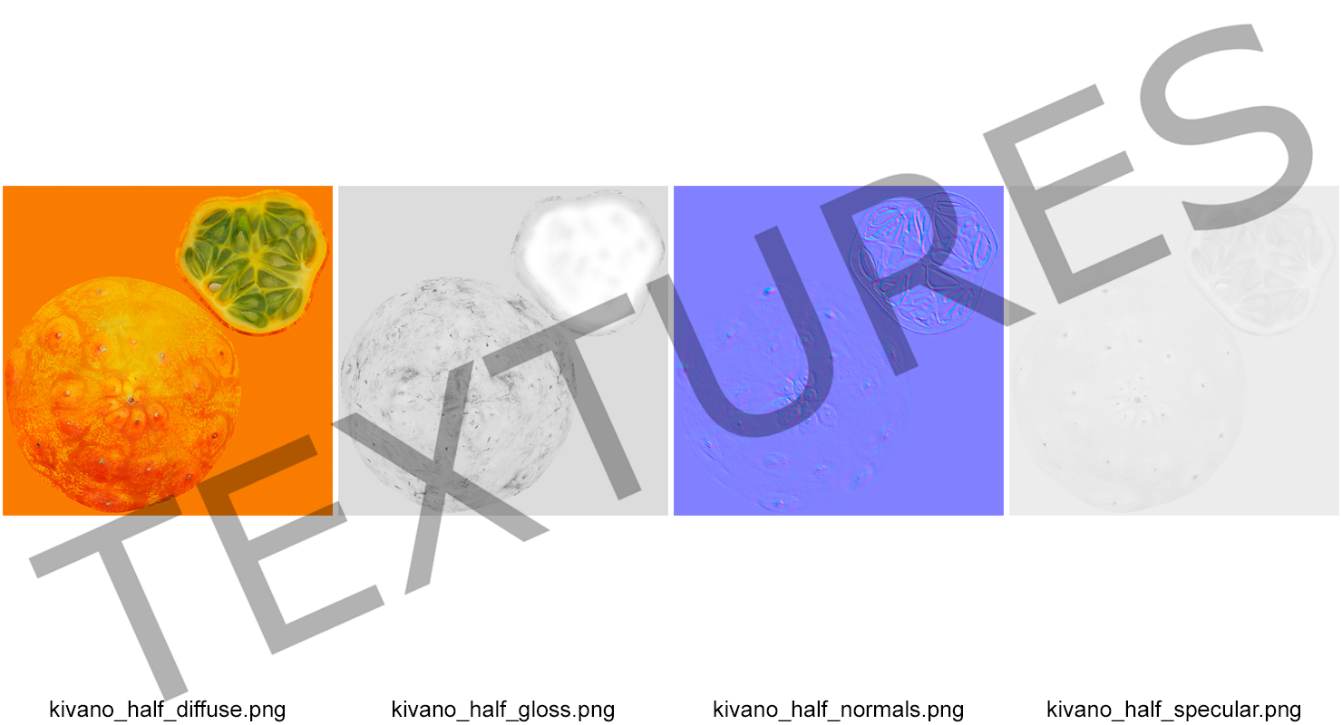 Horned Melon Kiwano Half is a high quality, photo real 3d model that will enhance detail and realism to any of your rendering projects. The model has a fully textured, detailed design that allows for close-up renders, and was originally modeled in 3ds Max 2020 and rendered with V-Ray. Renders have no postprocessing!