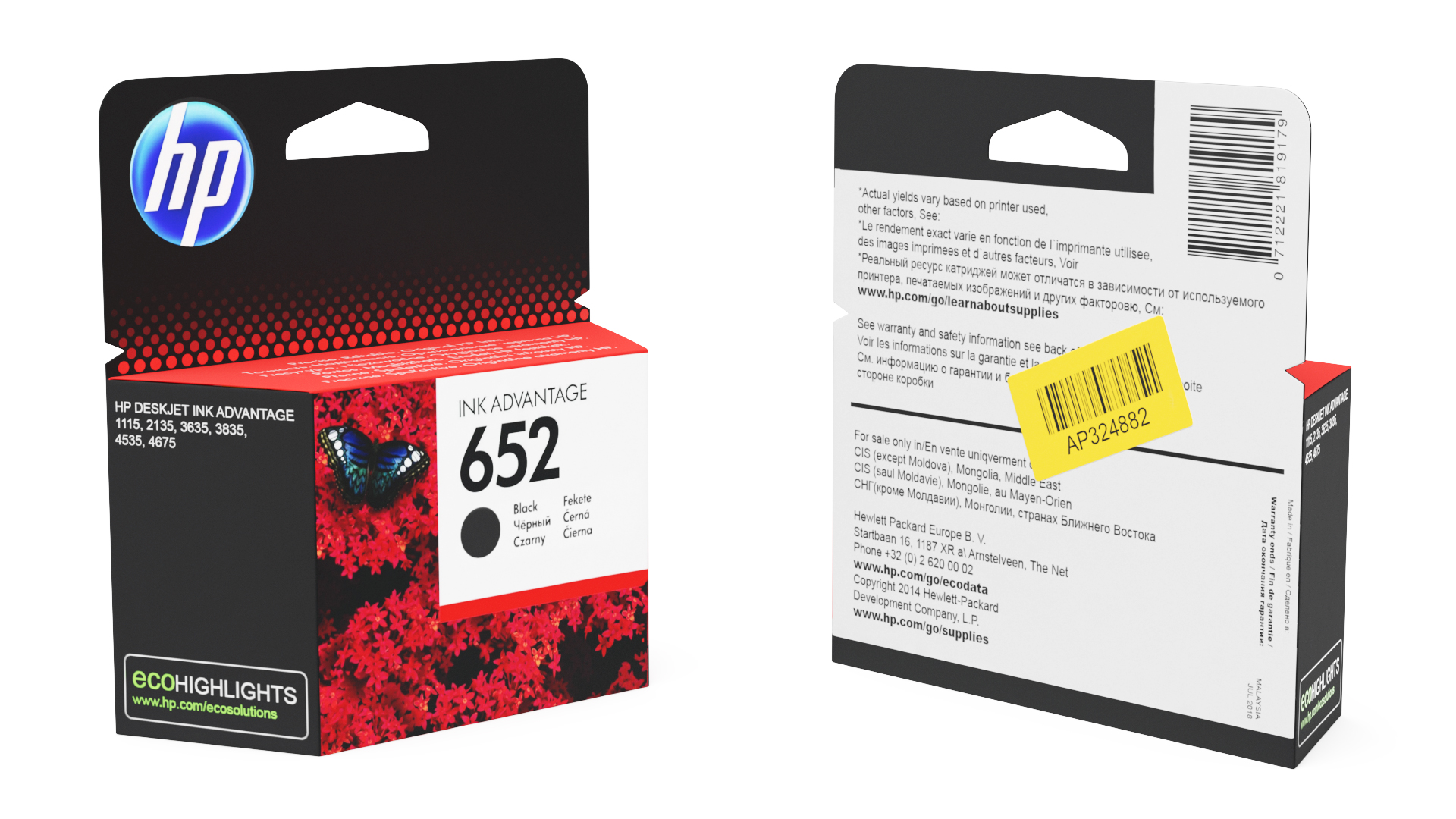 HP 652 Black Cartridge Box is a three-dimensional model of HP 652 black cartridge which is a crucial component for printers, and which is designed to deliver high-quality black ink for printing documents and images.