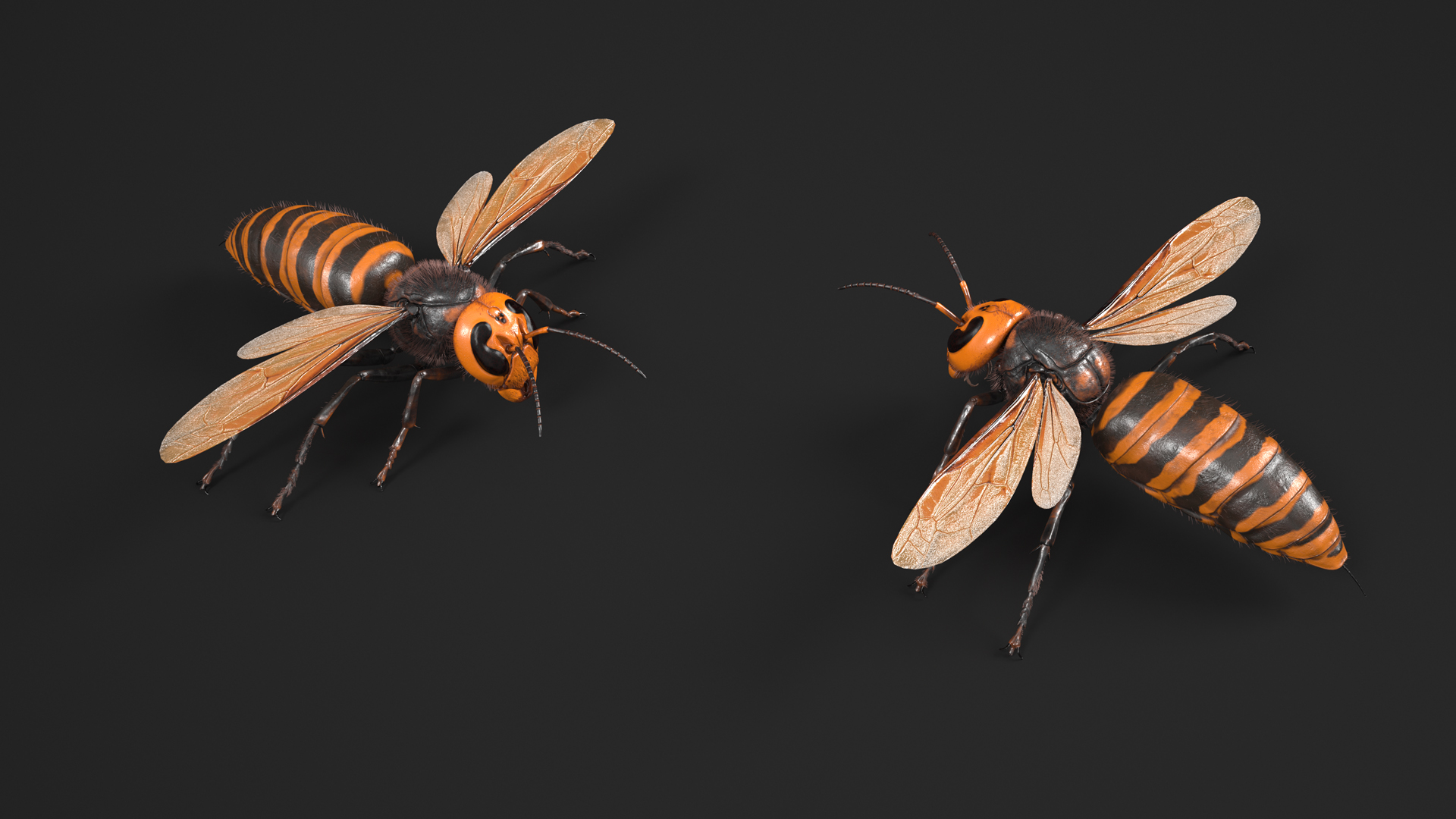 Huge Hornet Fur Base Pose is a three-dimensional model of Asian giant hornet which is also commonly referred to as the Vespa mandarina, Northern giant hornets, giant hornet or murder hornet.