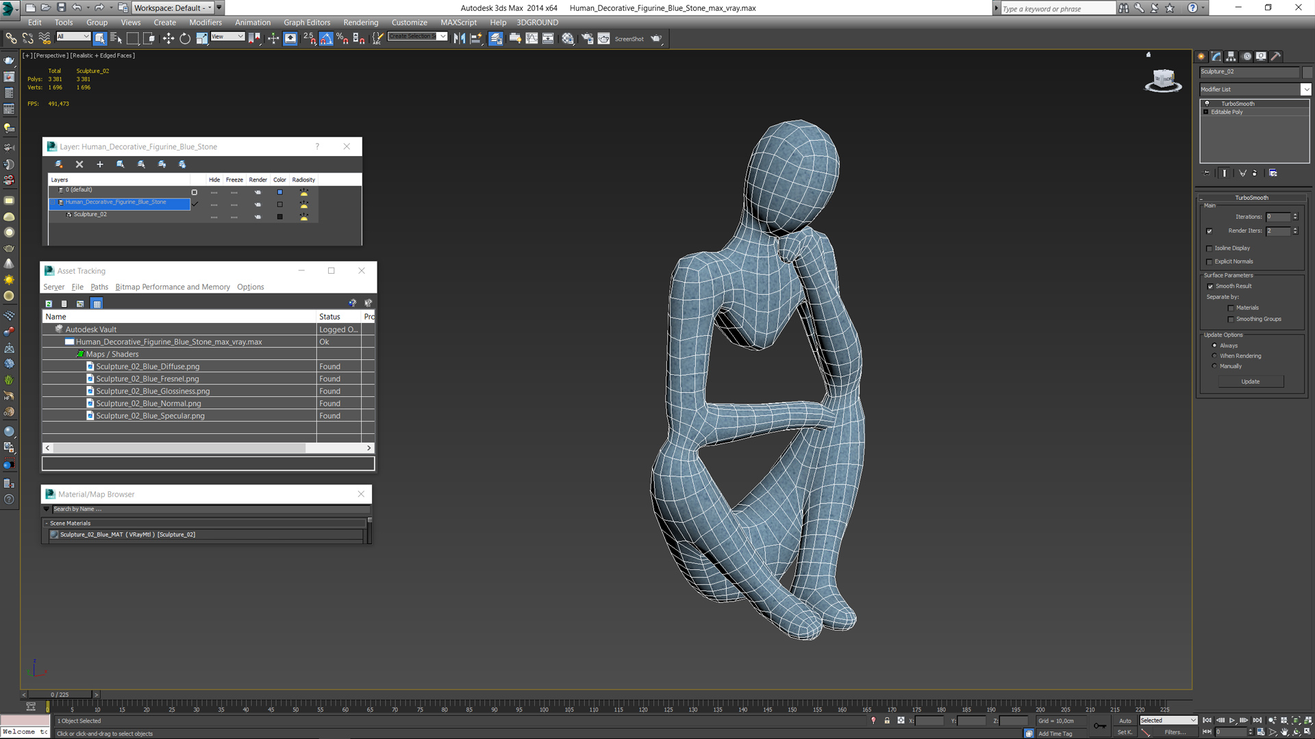 Human Decorative Figurine Blue Stone is a high quality, photo real 3d model that will enhance detail and realism to any of your rendering projects. The model has a fully textured, detailed design that allows for close-up renders, and was originally modeled in 3ds Max 2020 and rendered with V-Ray. Renders have no postprocessing!