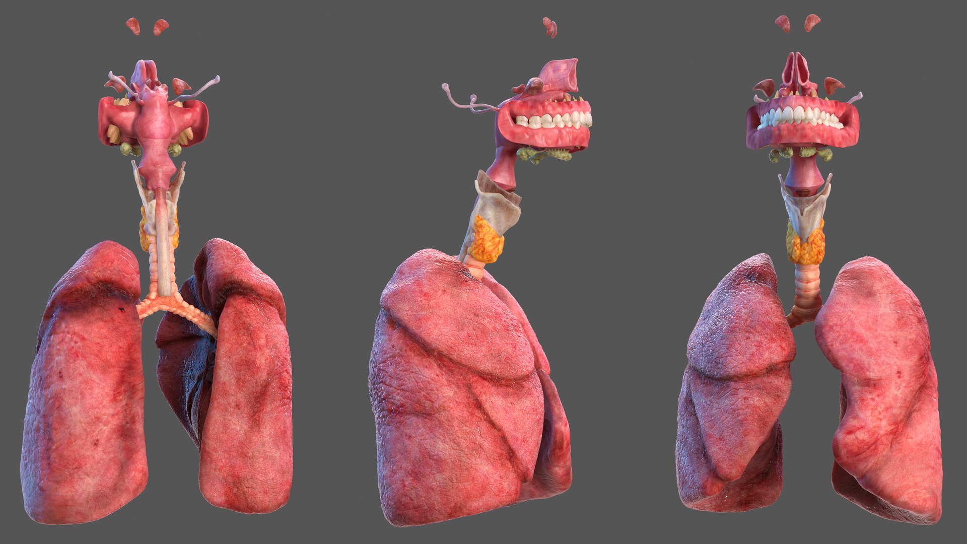 Human Full Respiratory System is a high quality, photo real 3d model that will enhance detail and realism to any of your rendering projects. The model has a fully textured, detailed design that allows for close-up renders, and was originally modeled in 3ds Max 2020 and rendered with V-Ray. Renders have no postprocessing!