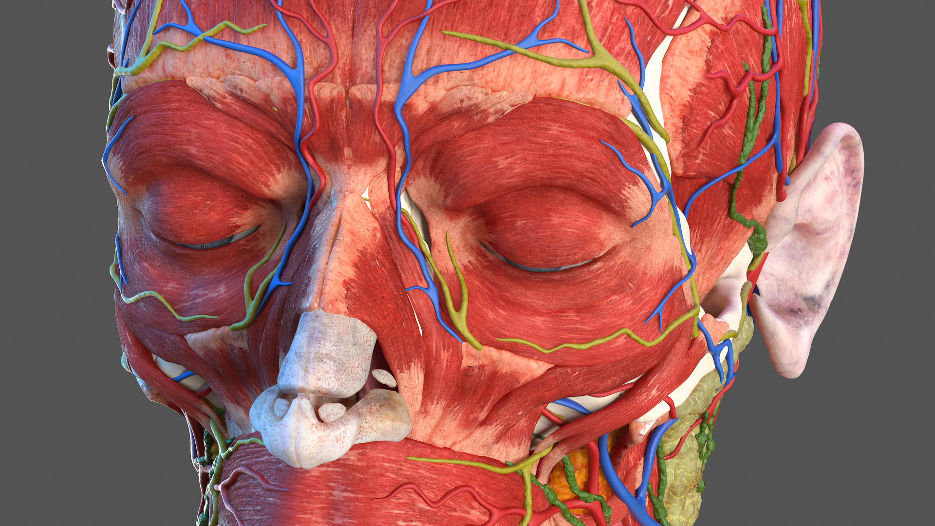 Human Head Muscular System soft tissue with function to produce force and motion of head and face.