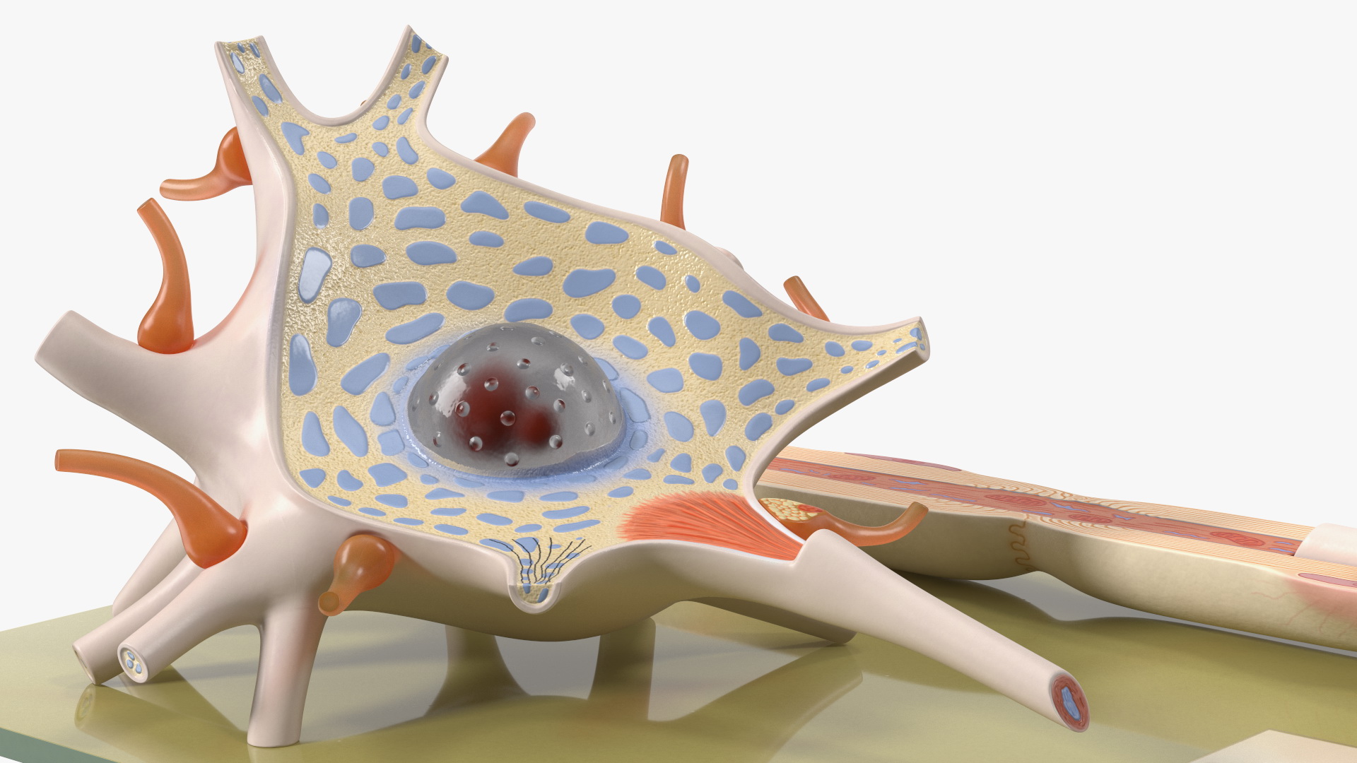 Human Neuron Model Cross-Section on Stand is a 3D model of plastic educational model that represents a section of a neuron in the brain, that used for educational purposes, to help students and researchers better understand the structure and function of neurons in the brain.