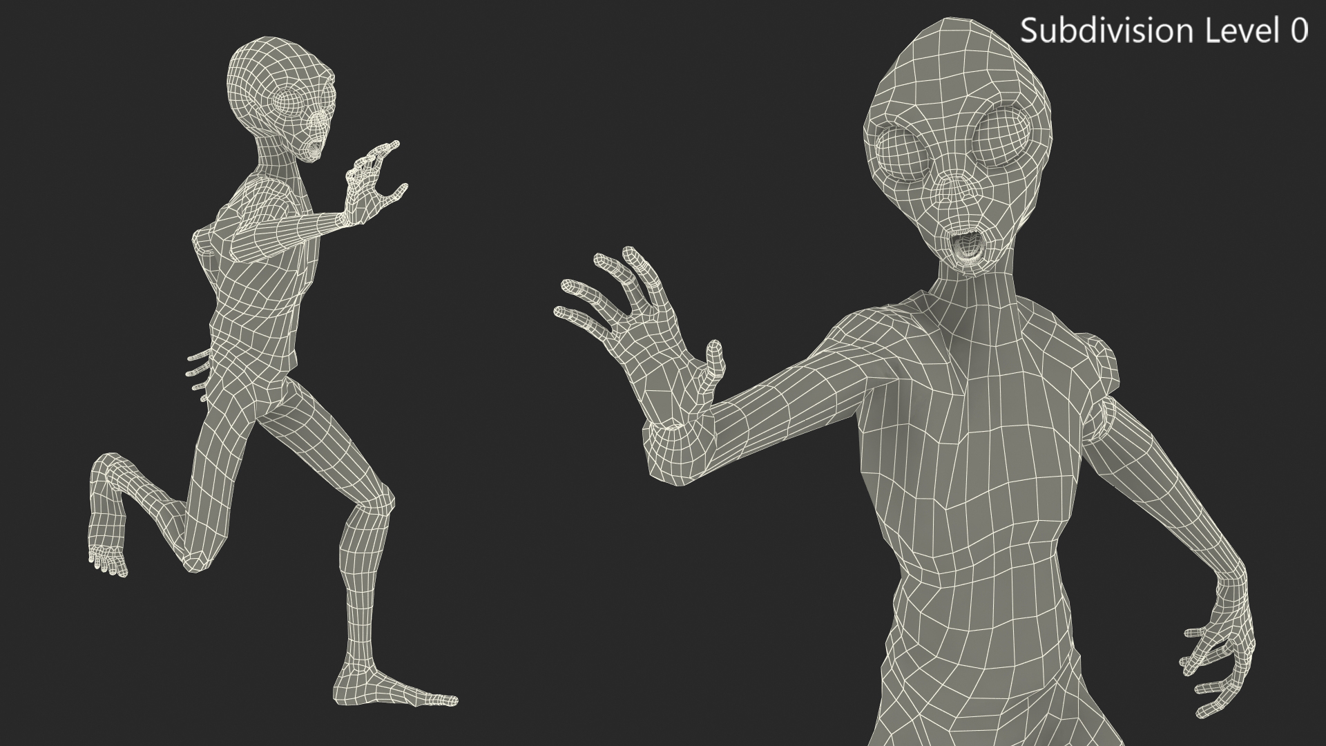 Humanoid Alien Running Pose Fur is a three-dimensional model of a Sci-Fi spooky human-like scary alien creature.