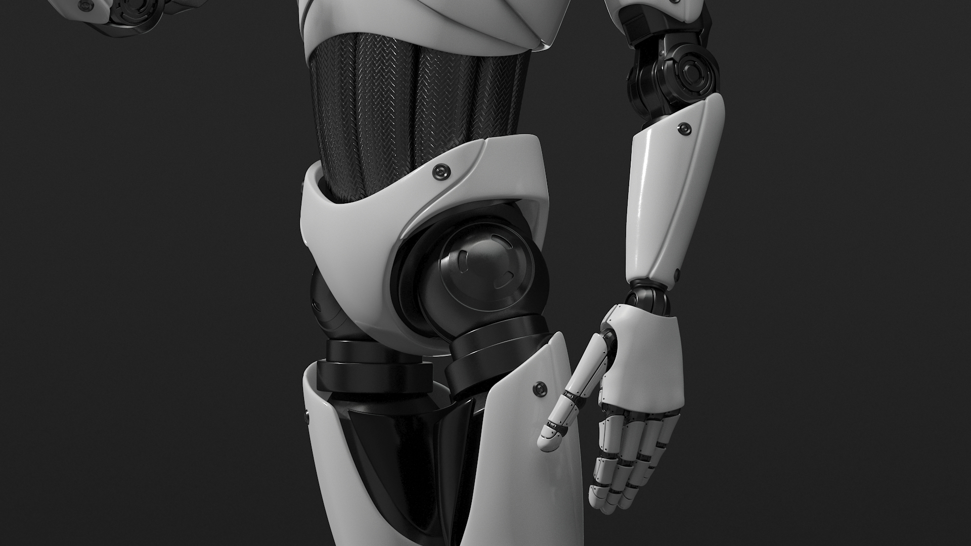 Sci-fi humanoid male bot (robot) which body is built with a combination of lightweight yet sturdy materials, providing flexibility and agility in its movements, and which limbs are jointed and articulate smoothly, allowing the robot to perform a wide range of actions with precision and fluidity, and which all body equipped with an array of sensors, enabling it to perceive and interact with its surroundings. Contemporary sci-fi humanoid male robot (AI bot or cyborg) which represents the pinnacle of technological achievement, blending the line between human and machine, and which can serve as a central character in sci-fi stories, exploring themes of artificial intelligence, sentience, and the impact of technology on society. Futuristic humanoid shaped robotics machinery which is designed represent the peak of modern technological achievement.