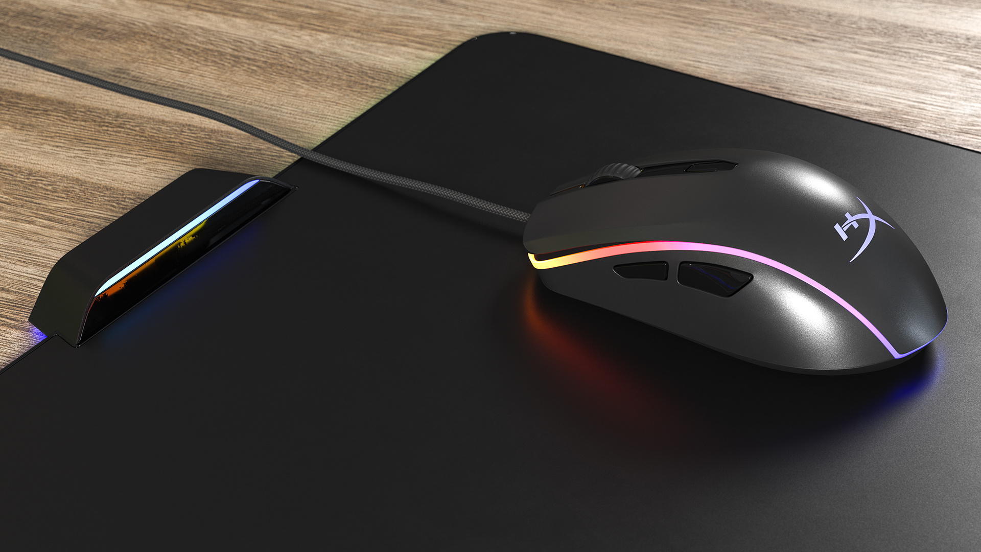 HyperX Pulsefire Surge RGB Wired Gaming Mouse a contemporary computer mouse device with a optical sensor, ergonomic shape and RGB lighting.