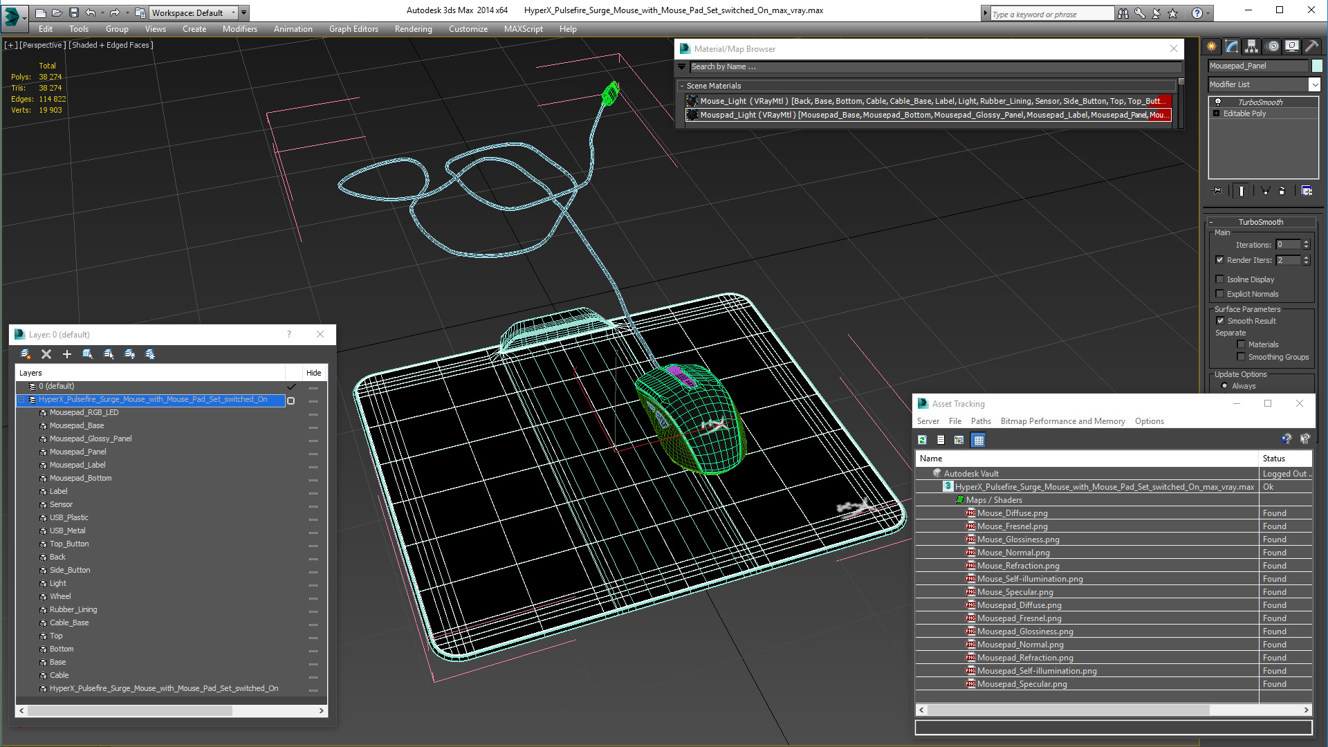 HyperX Pulsefire Surge Mouse with Mouse Pad Set switched On is a high quality, photo real 3d model that will enhance detail and realism to any of your rendering projects. The model has a fully textured, detailed design that allows for close-up renders, and was originally modeled in 3ds Max 2020 and rendered with V-Ray. Renders have no postprocessing!