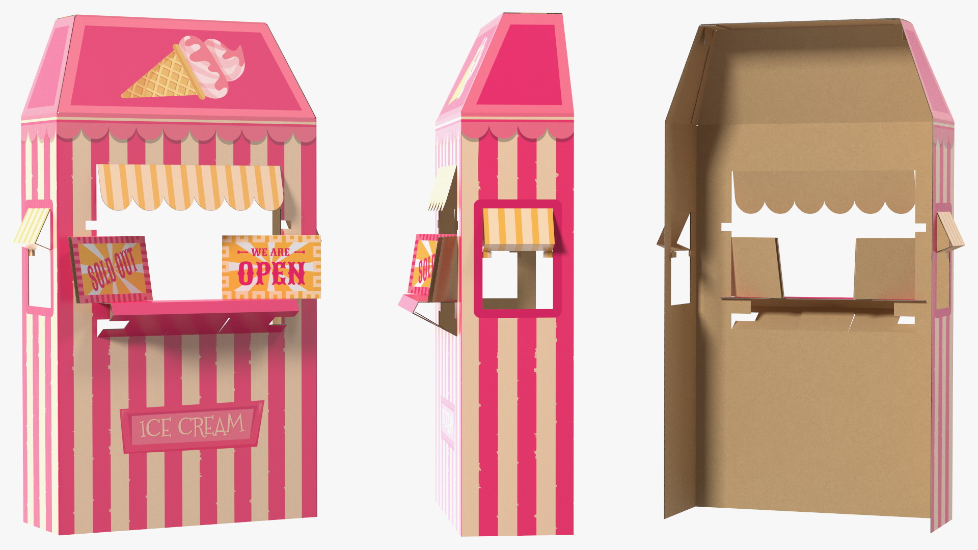 Ice Cream Booth Cardboard Stand is a three-dimensional model of a stand construction made in miniature which is kid games toy backdrop equipment.