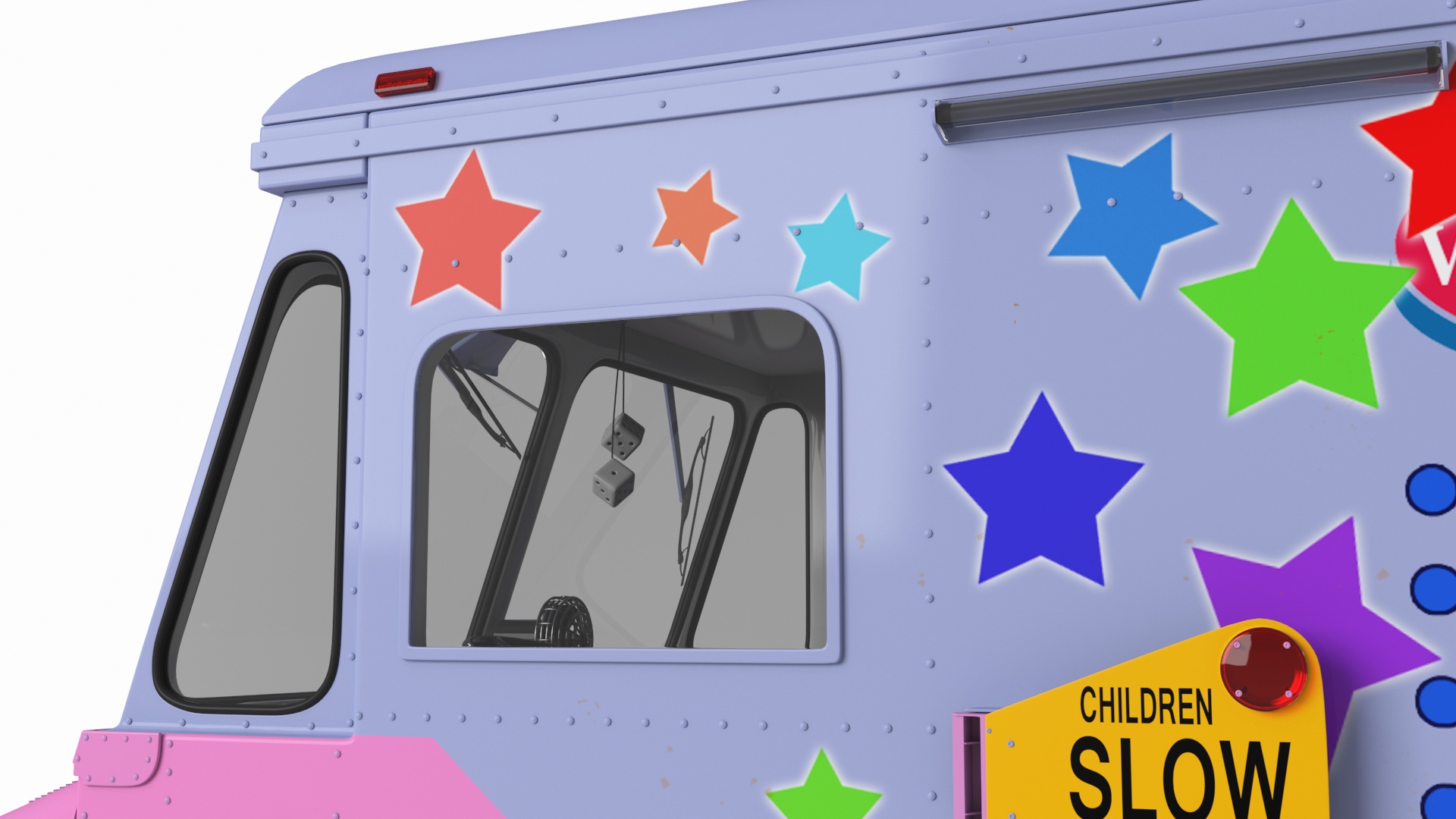 Ice Cream Truck with Star Decals and Branding is a three-dimensional model of classic ice cream truck that is a vintage vehicle, designed for selling ice cream directly to customers on the street.