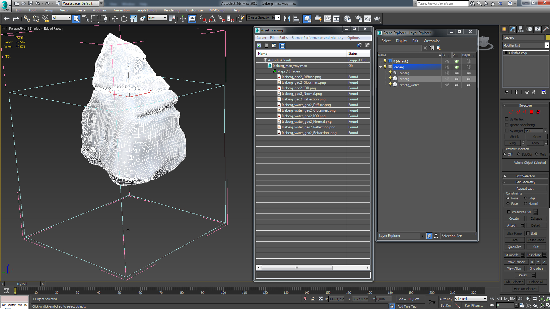Iceberg is a high quality, photo real 3d model that will enhance detail and realism to any of your rendering projects. The model has a fully textured, detailed design that allows for close-up renders, and was originally modeled in 3ds Max 2020 and rendered with V-Ray. Renders have no postprocessing!