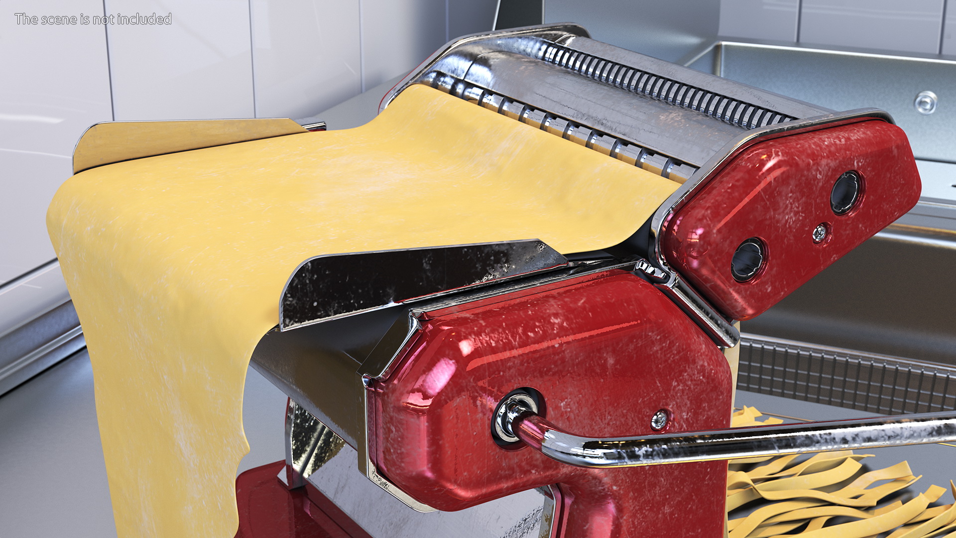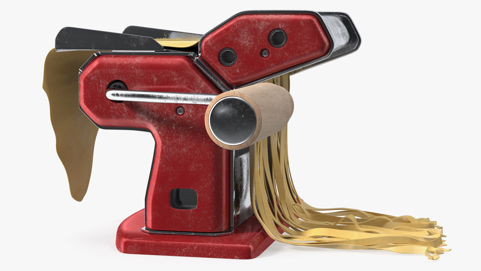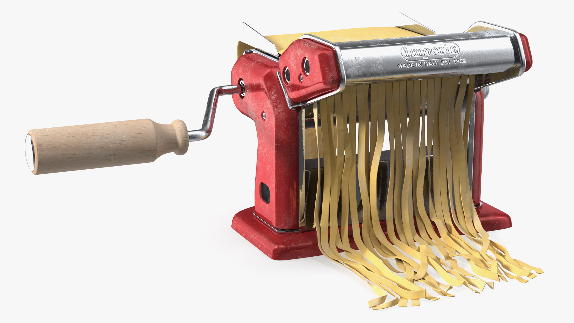 Imperia Pasta Maker Machine Red with Dough is a three-dimensional model of a domestic kitchen pasta tool which is popular crank noodle machinery.
