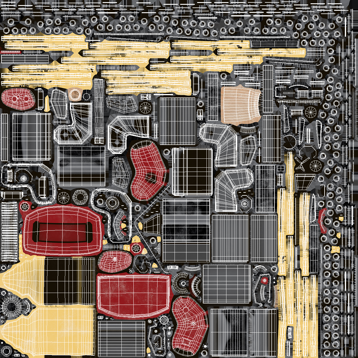 All textures and materials are included and mapped. (All colors can be easily modified.)