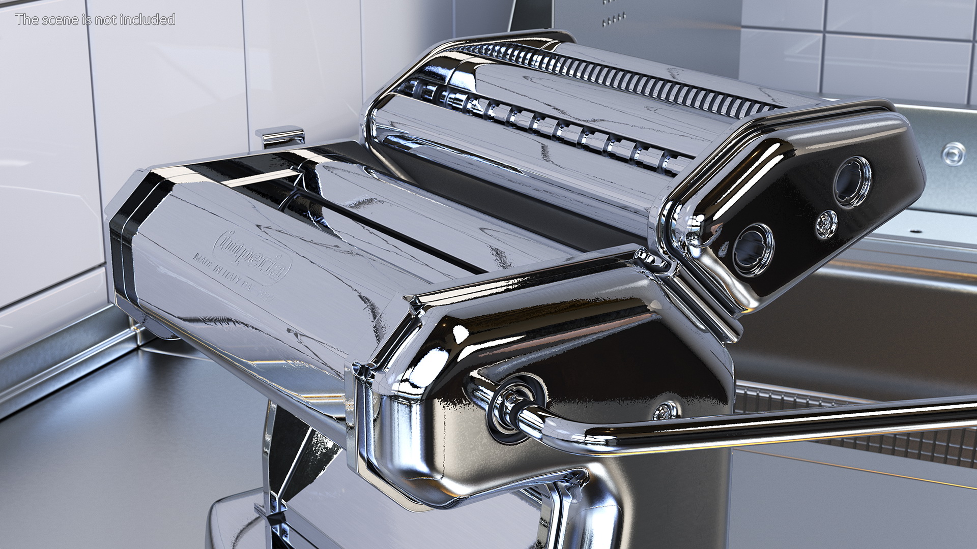 Imperia Pasta Maker Machine Silver is a three-dimensional model of a home kitchen pasta machine.