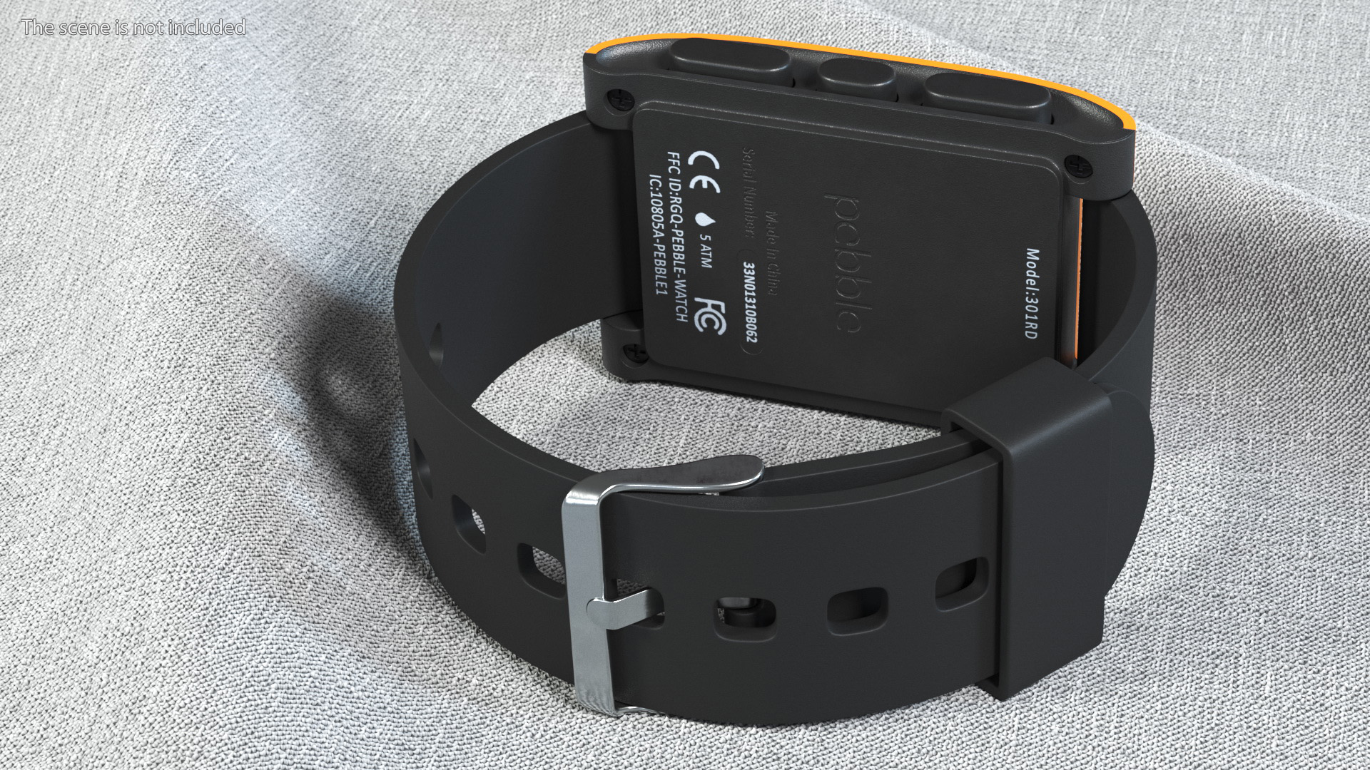 Included Pebble Smart Watch with Strap is a three-dimensional model of digital electronic smartwatches item which is timepiece accessory with health measurement technologies inside.