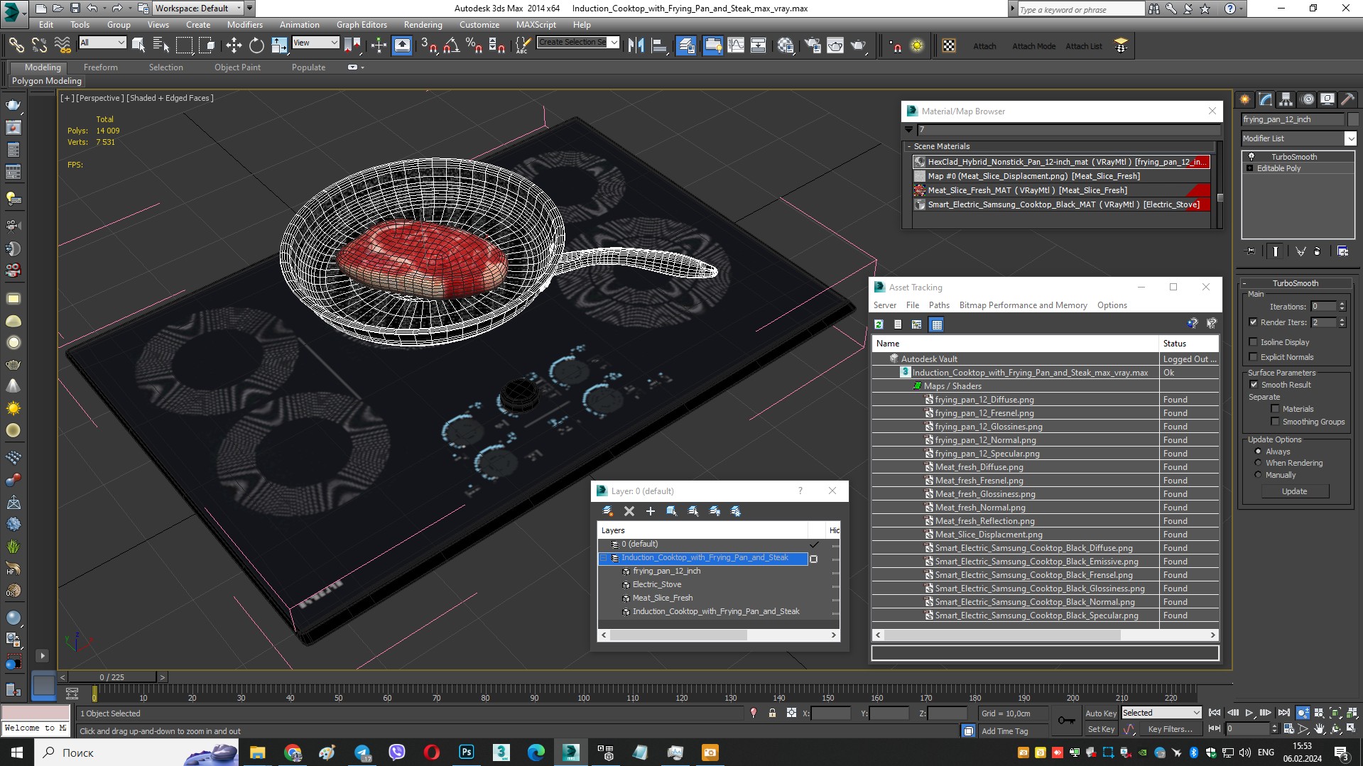 Induction Cooktop with Frying Pan and Steak is a high quality, photo real 3d model that will enhance detail and realism to any of your rendering projects. The model has a fully textured, detailed design that allows for close-up renders, and was originally modeled in 3ds Max 2020 and rendered with V-Ray. Renders have no postprocessing!