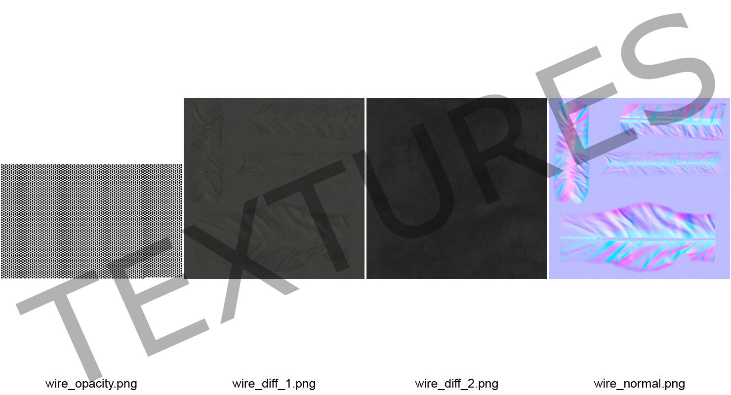 All textures and materials are included and mapped. (All colors can be easily modified.)