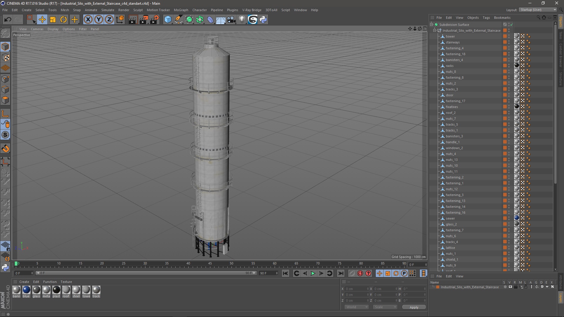 Industrial Silo with External Staircase is a high quality, photo real 3d model that will enhance detail and realism to any of your rendering projects. The model has a fully textured, detailed design that allows for close-up renders, and was originally modeled in 3ds Max 2020 and rendered with V-Ray. Renders have no postprocessing!