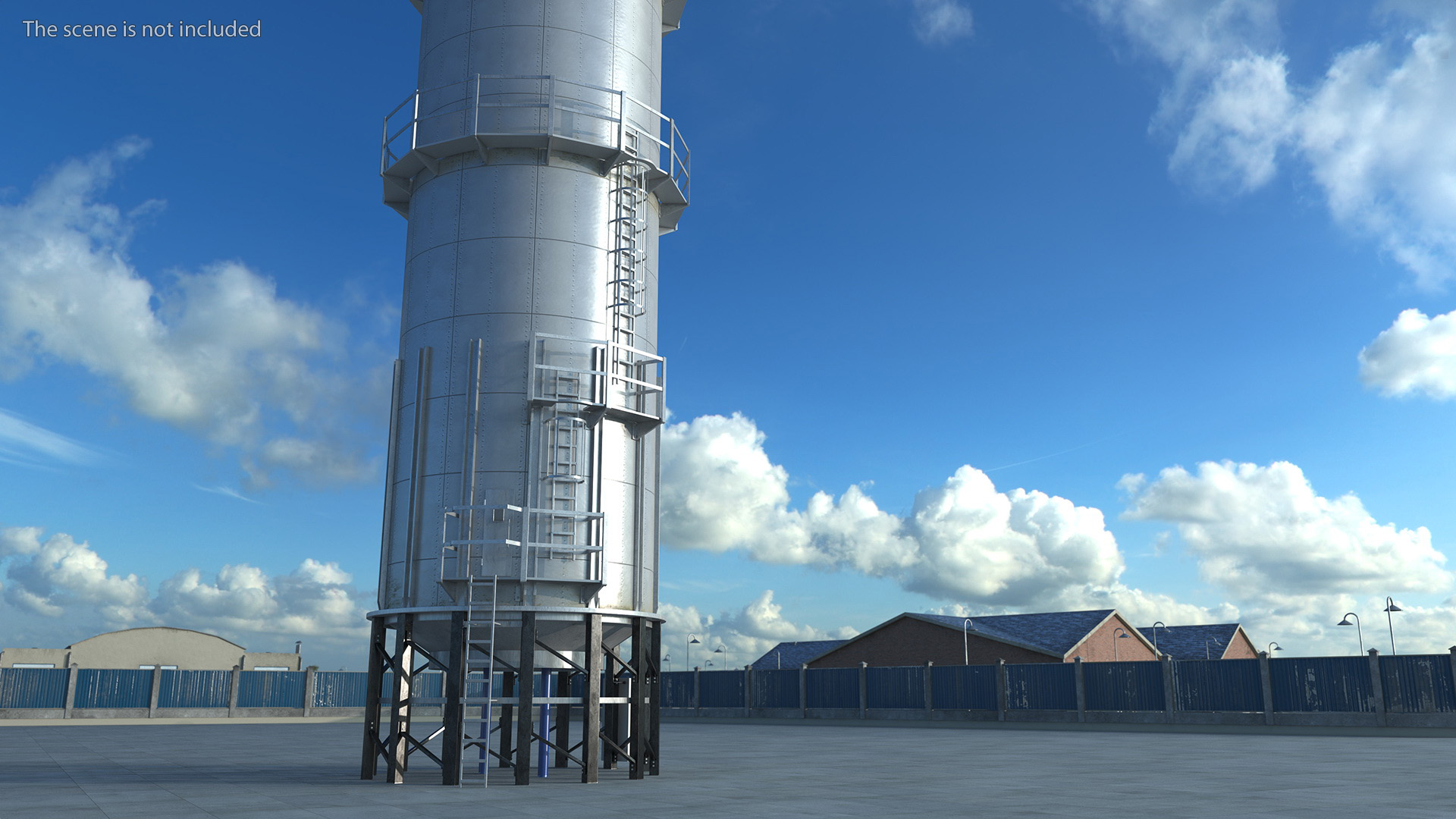 Industrial Silo with External Staircase is a 3d model of a large storage silo commonly used in agricultural, manufacturing, and processing industries, featuring an external staircase for maintenance and access.