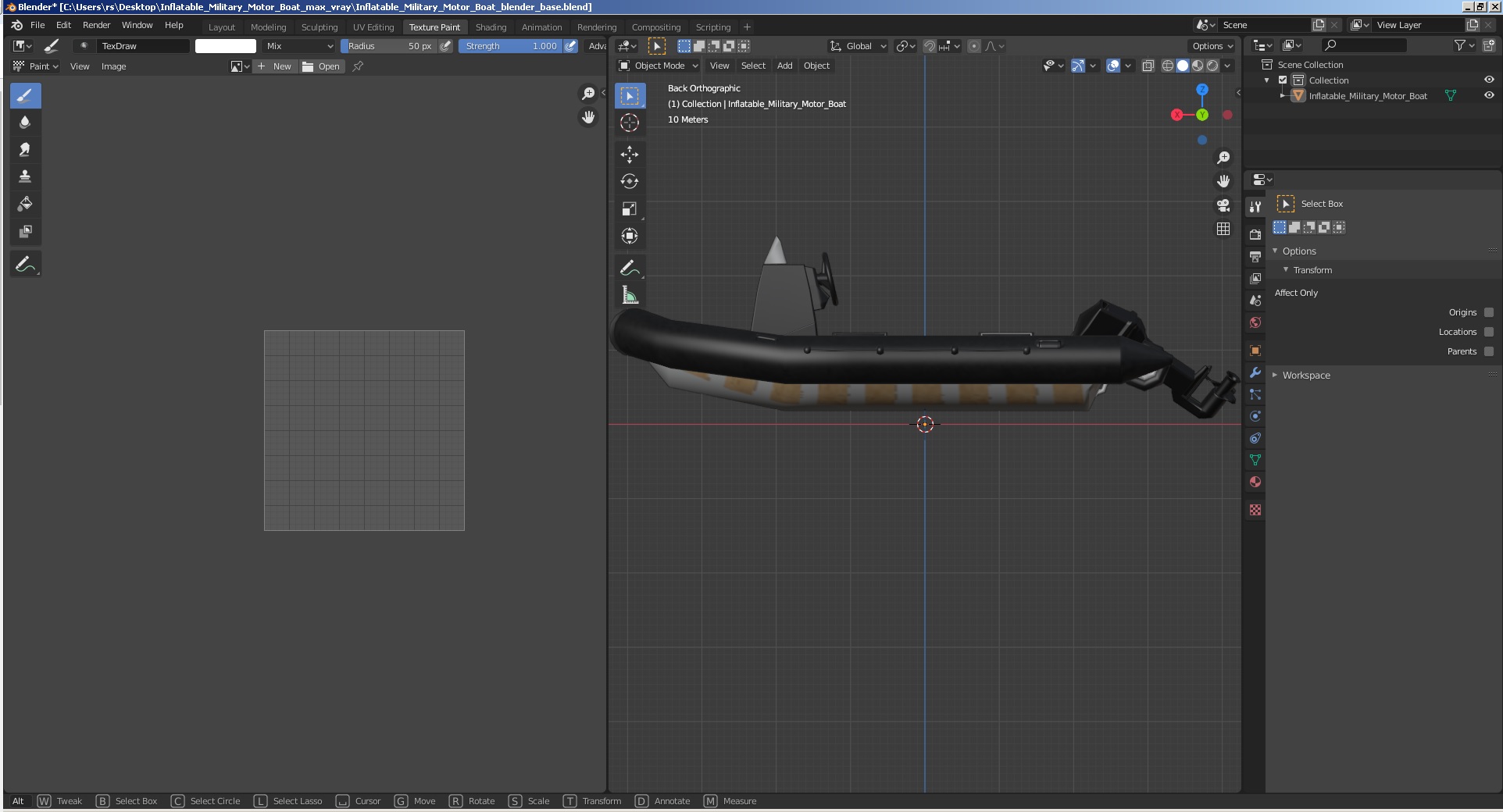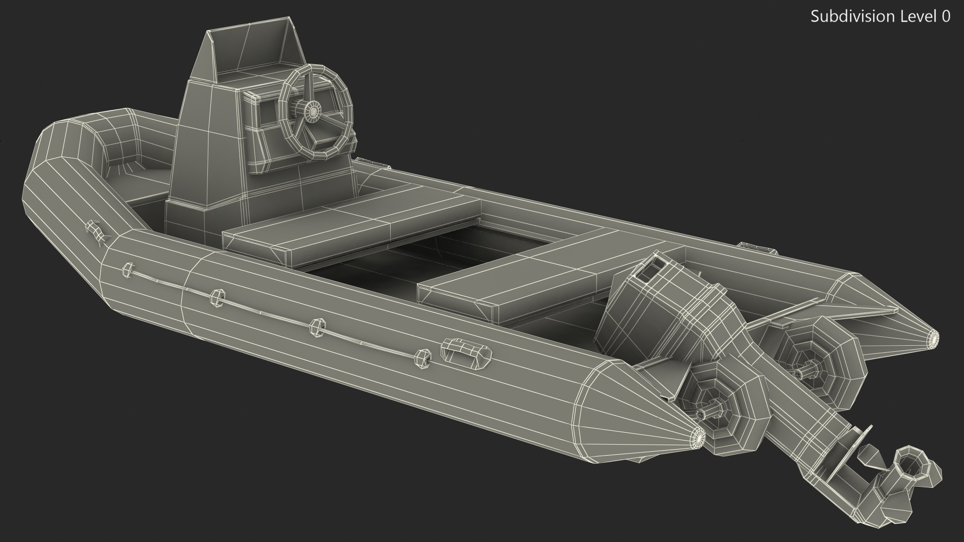 Inflatable Military Motor Boat is a high quality, photo real 3d model that will enhance detail and realism to any of your rendering projects. The model has a fully textured, detailed design that allows for close-up renders, and was originally modeled in 3ds Max 2020 and rendered with V-Ray. Renders have no postprocessing!