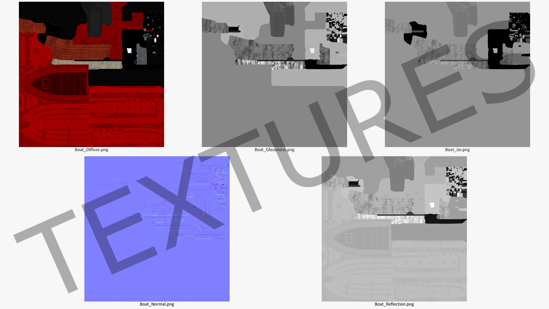 All textures and materials are included and mapped. (All colors can be easily modified.)