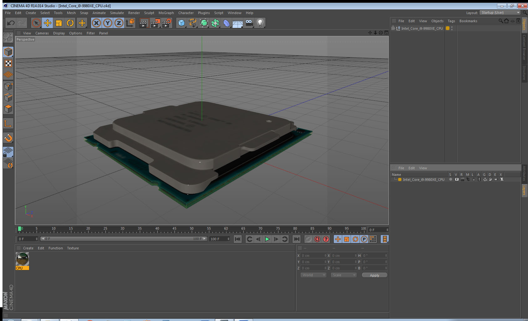 Intel Core i9-9980XE CPU is a high quality, photo real 3d model that will enhance detail and realism to any of your rendering projects. The model has a fully textured, detailed design that allows for close-up renders, and was originally modeled in 3ds Max 2020 and rendered with V-Ray. Renders have no postprocessing!
