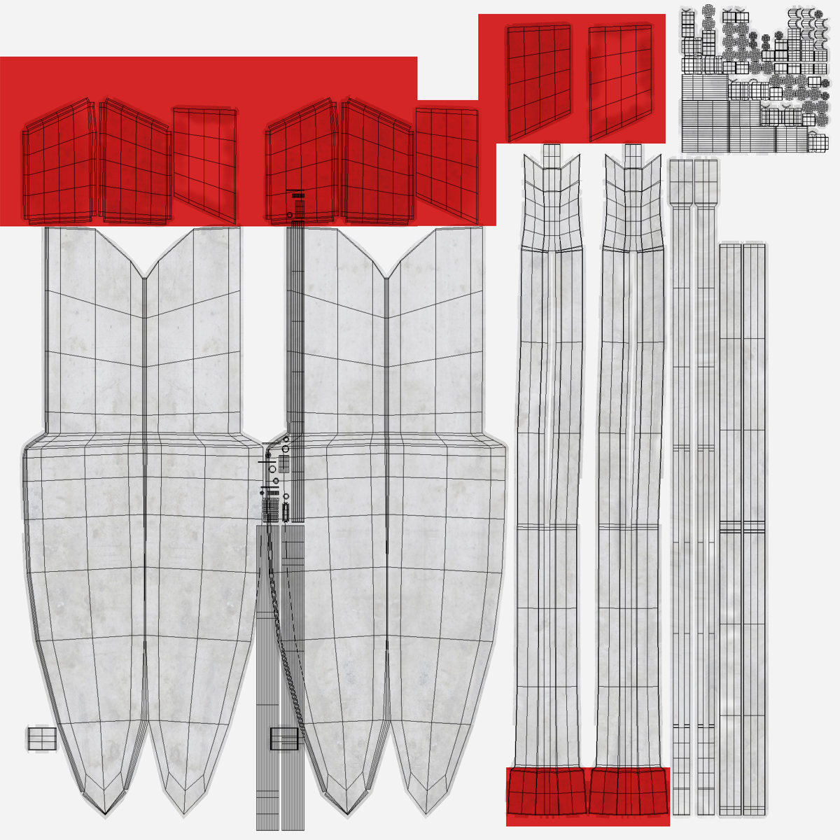 All textures and materials are included and mapped. (All colors can be easily modified.)