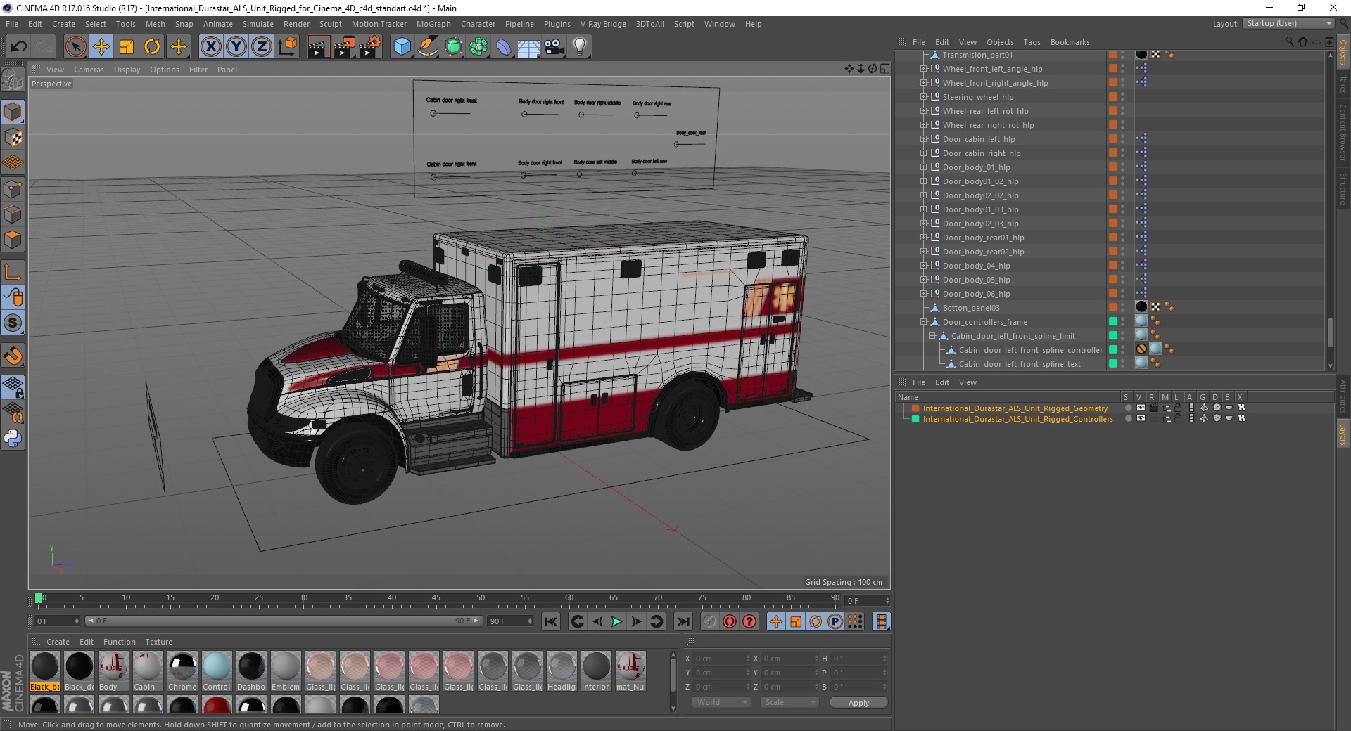 International Durastar ALS Unit Rigged for Cinema 4D is fully rigged and is ready to be animated in Cinema 4D. You can easily position it the way you need or animate it the way your project requires. See the screenshots to get an idea of how rigging works. The pose of the model on the render images is an example and can be recreated using rig, it is not initially included into the product.