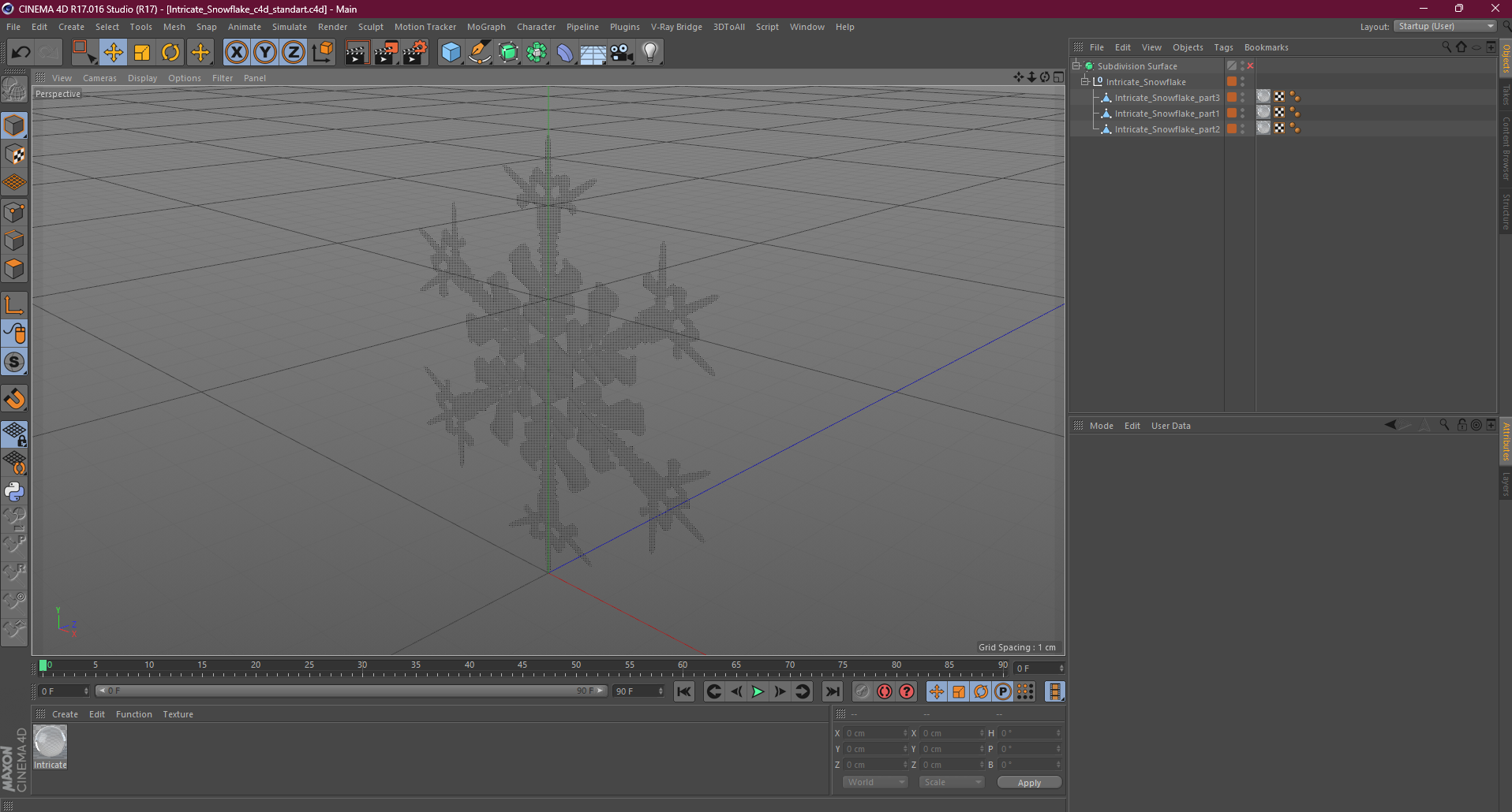 Intricate Snowflake is a three-dimensional model of decorative snowflake pattern which is an artistic design inspired by the intricate and symmetrical shapes of real snowflakes.