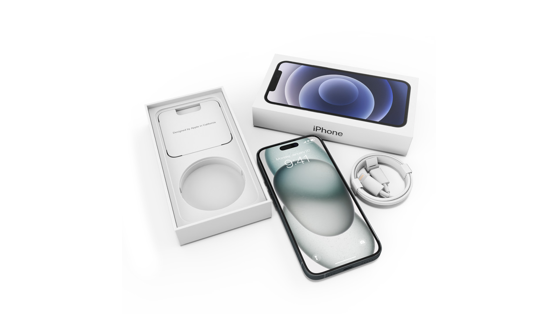 IPhone 15 Black Unboxed is a three-dimensional model of special packaging carton box near iOS compatible Apple smartphone which is a 17th generation contemporary iPhone gadget.