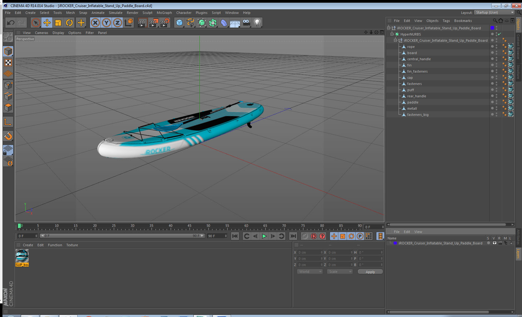 iROCKER Cruiser Inflatable Stand Up Paddle Board is a high quality, photo real 3d model that will enhance detail and realism to any of your rendering projects. The model has a fully textured, detailed design that allows for close-up renders, and was originally modeled in 3ds Max 2020 and rendered with V-Ray. Renders have no postprocessing!