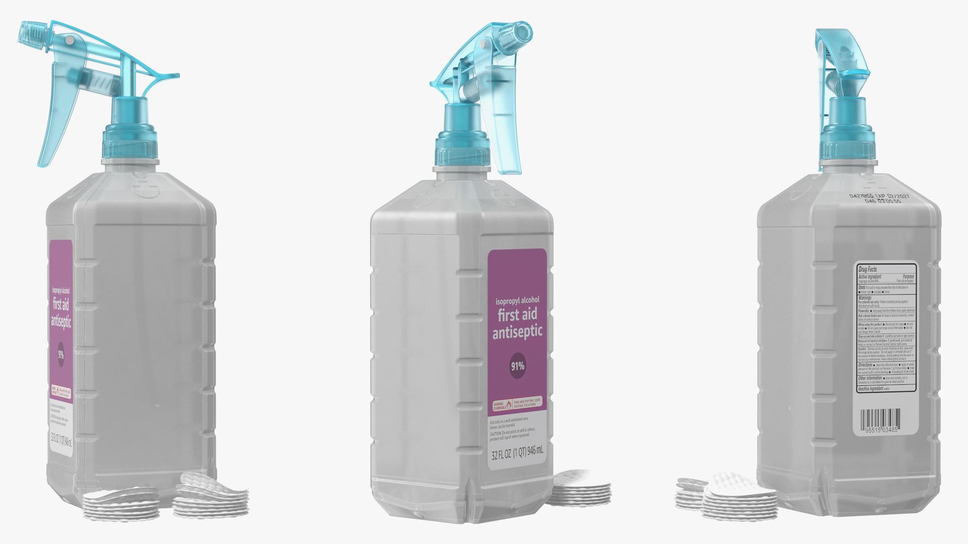 Isopropyl Alcohol Spray Bottle is a high quality, photo real 3d model that will enhance detail and realism to any of your rendering projects. The model has a fully textured, detailed design that allows for close-up renders, and was originally modeled in 3ds Max 2020 and rendered with V-Ray. Renders have no postprocessing!