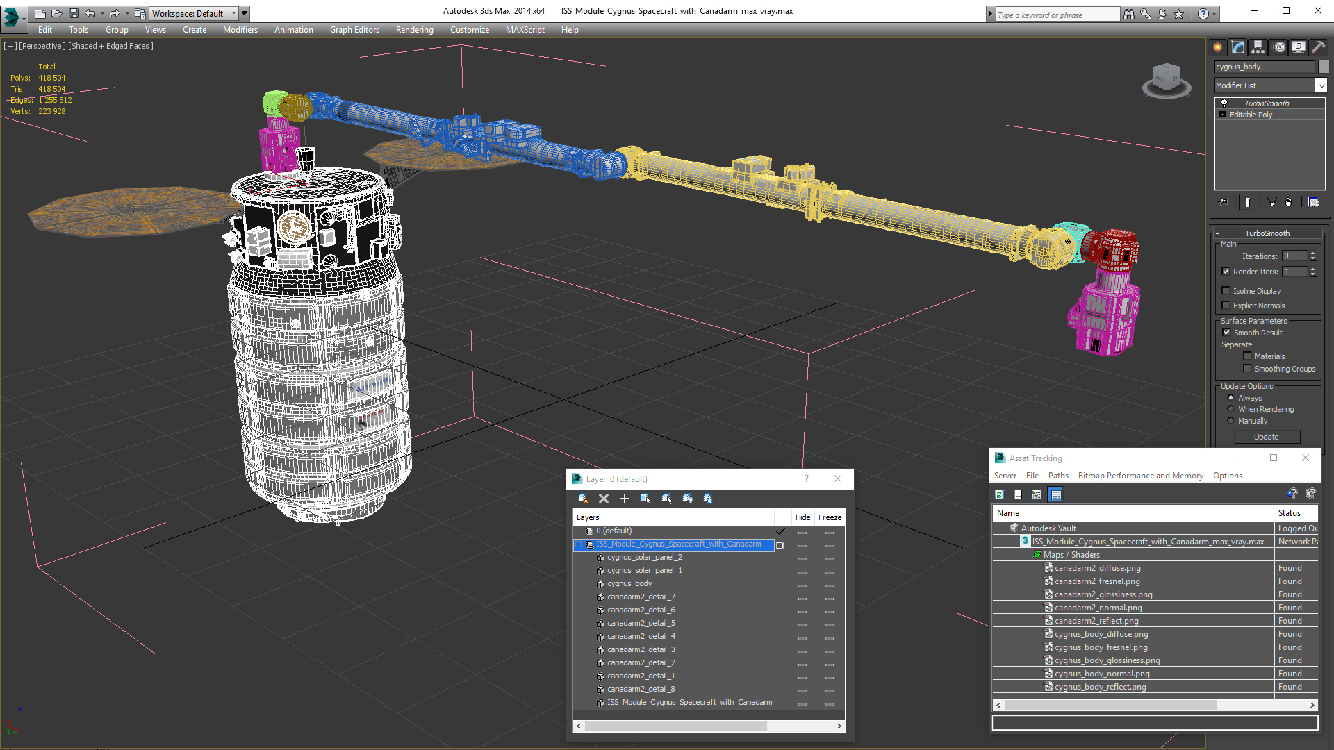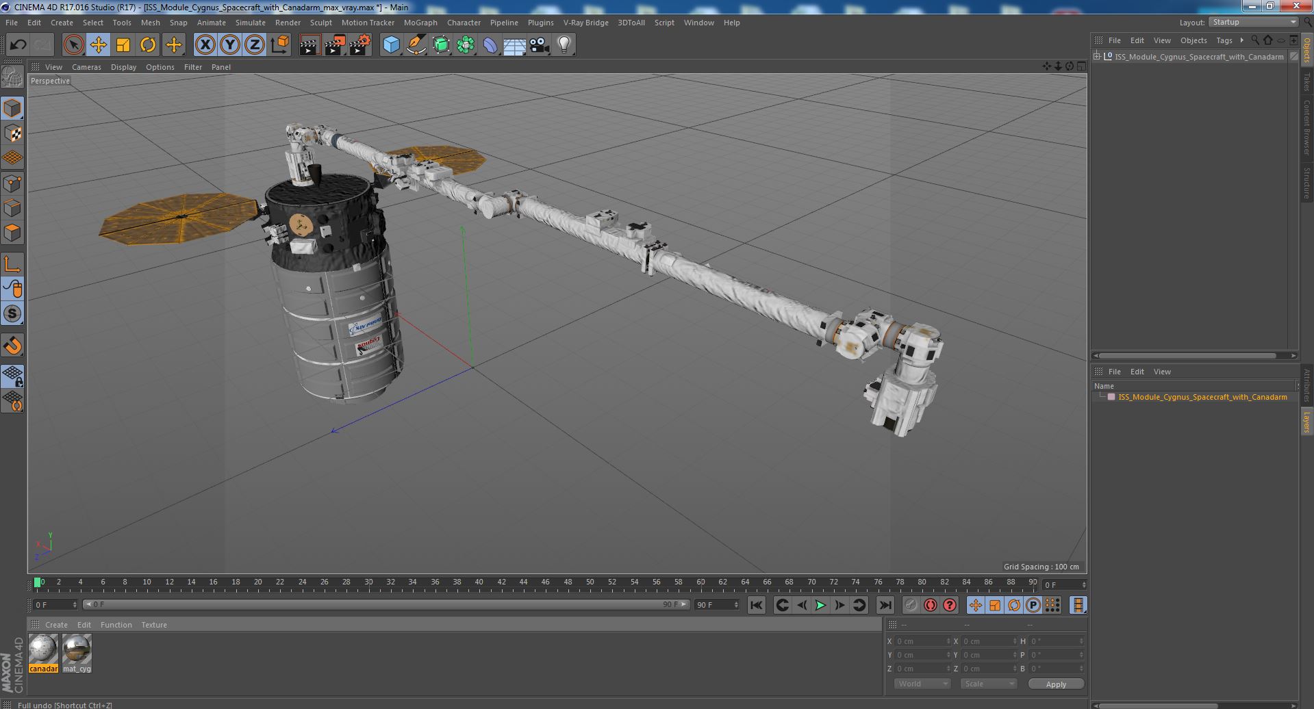 ISS Module Cygnus Spacecraft with Canadarm is a high quality, photo real 3d model that will enhance detail and realism to any of your rendering projects. The model has a fully textured, detailed design that allows for close-up renders, and was originally modeled in 3ds Max 2020 and rendered with V-Ray. Renders have no postprocessing!