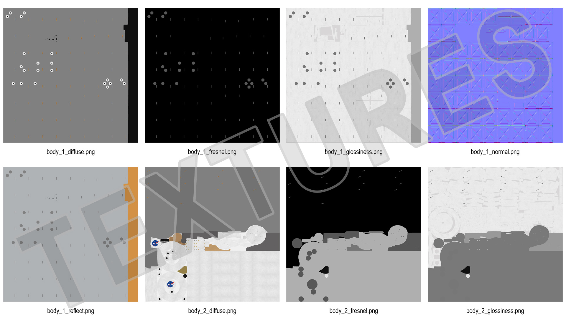 All textures and materials are included and mapped. (All colors can be easily modified.)