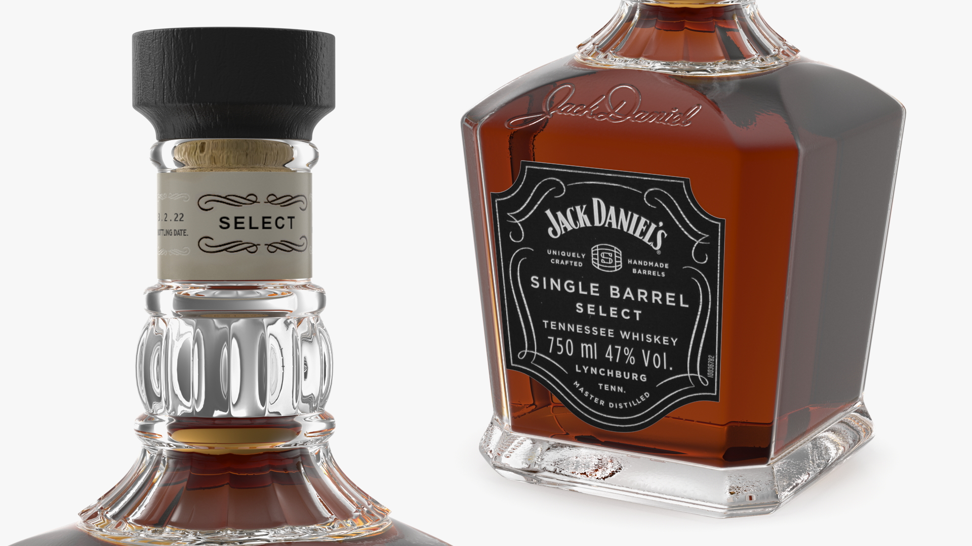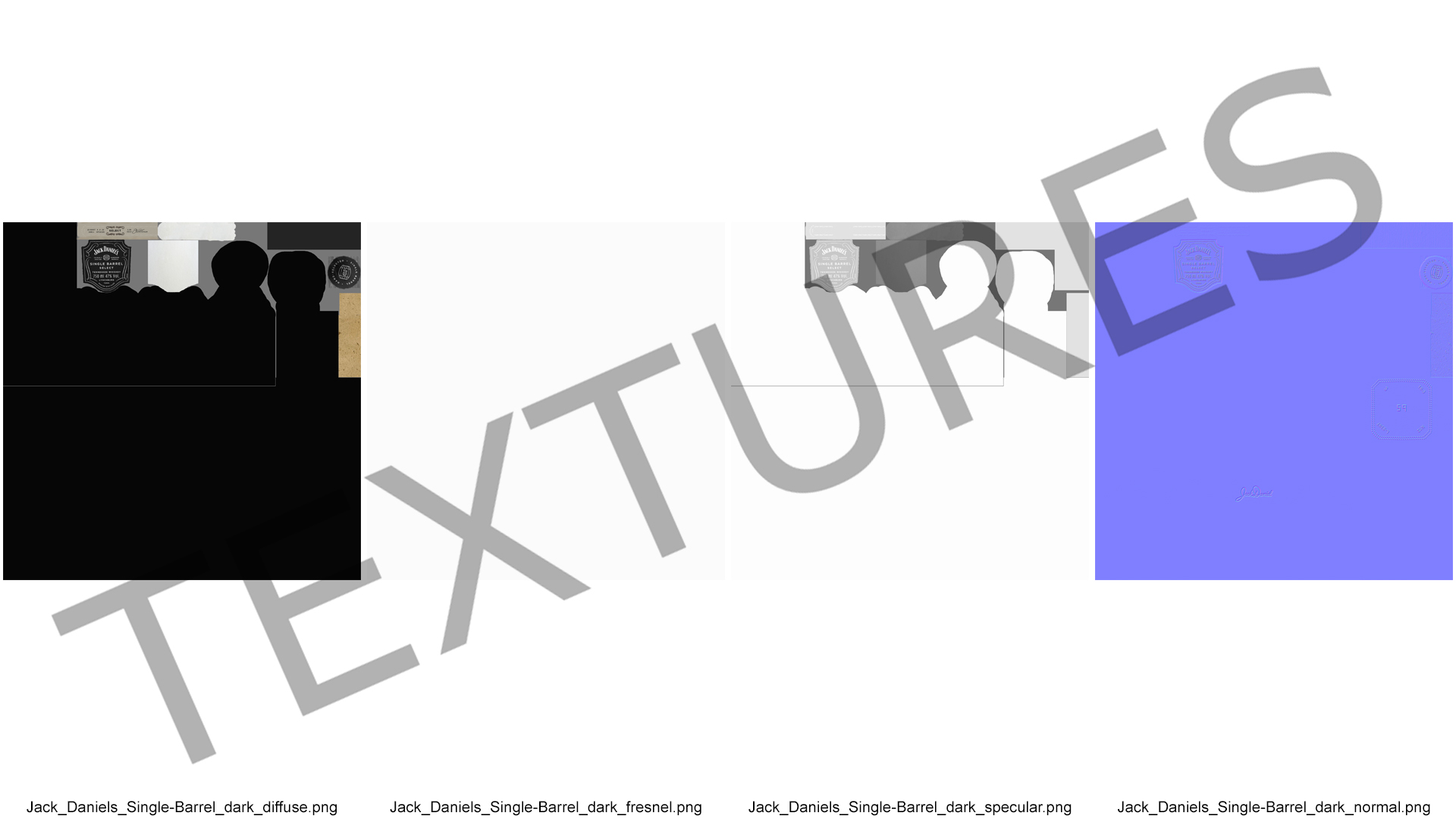 Jack Daniels Single-Barrel Dark is a three-dimensional model of popular, well known whisky alcoholic beverage, which aged in wooden casks (containers made of oak wood).