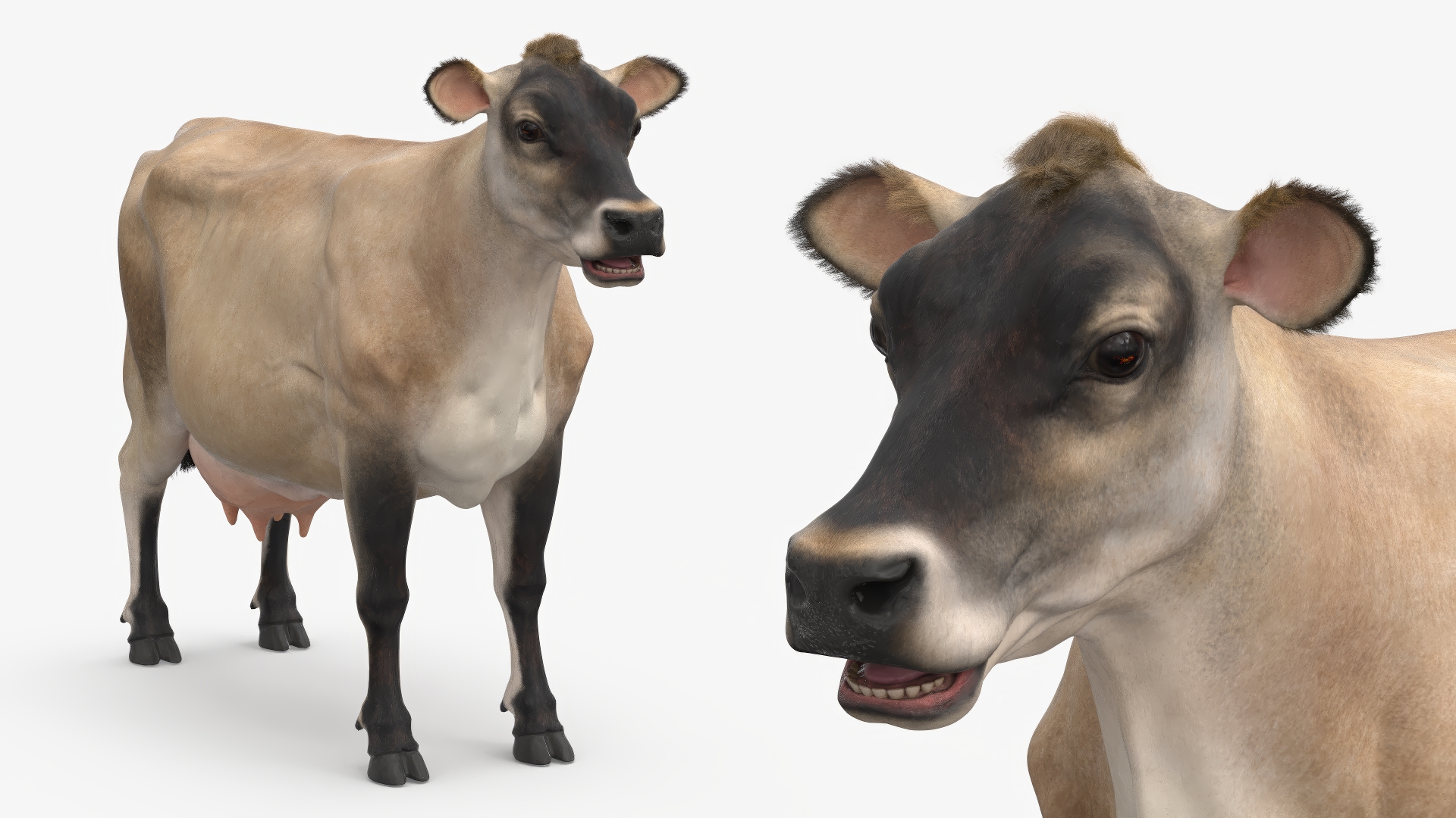 Jersey Dairy Cow Fur is a high quality, photo real 3d model that will enhance detail and realism to any of your rendering projects. The model has a fully textured, detailed design that allows for close-up renders, and was originally modeled in 3ds Max 2020 and rendered with V-Ray. Renders have no postprocessing!