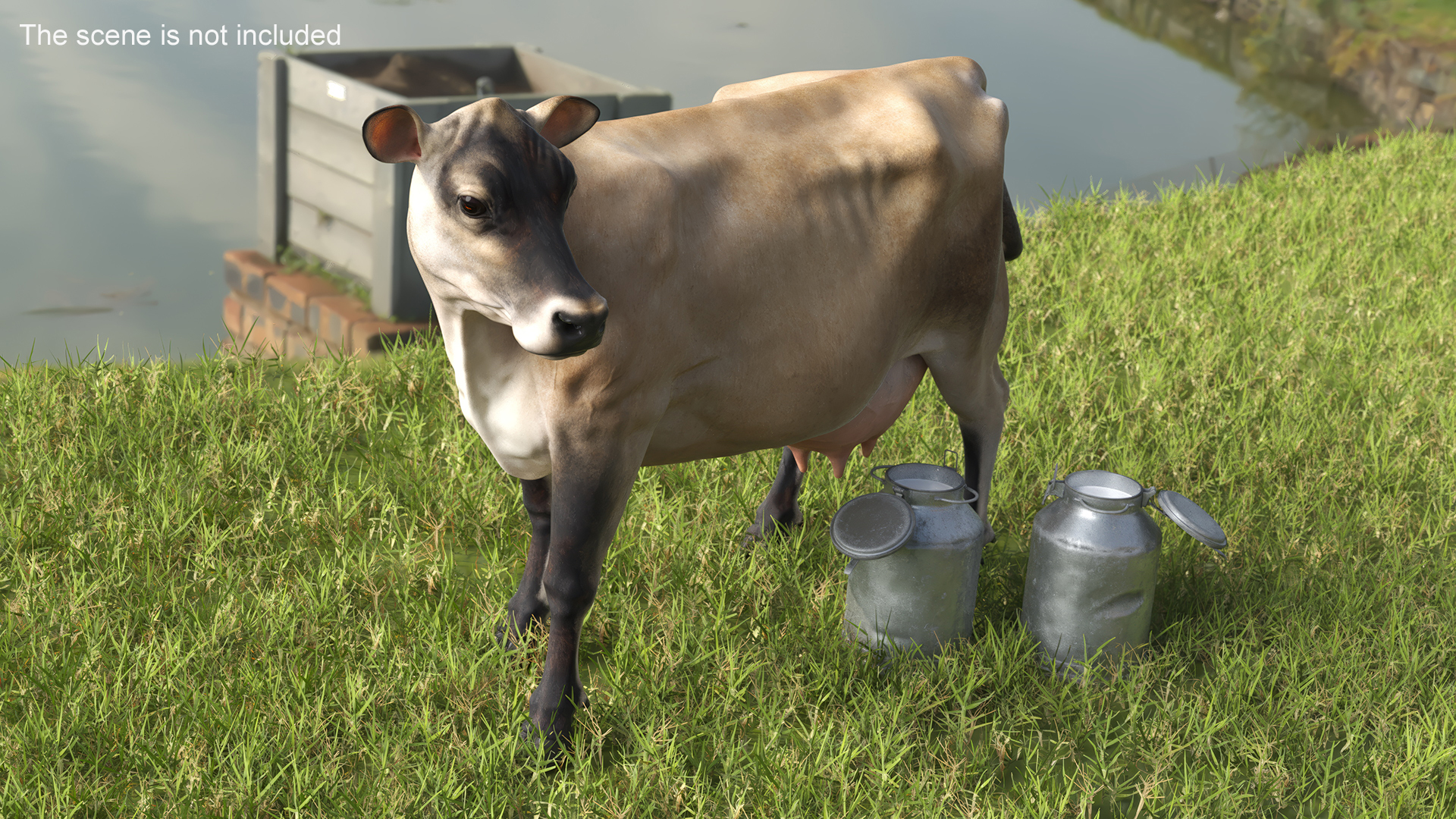 Jersey Heifer and Milk Bucket is a high quality, photo real 3d model that will enhance detail and realism to any of your rendering projects. The model has a fully textured, detailed design that allows for close-up renders, and was originally modeled in 3ds Max 2020 and rendered with V-Ray. Renders have no postprocessing!