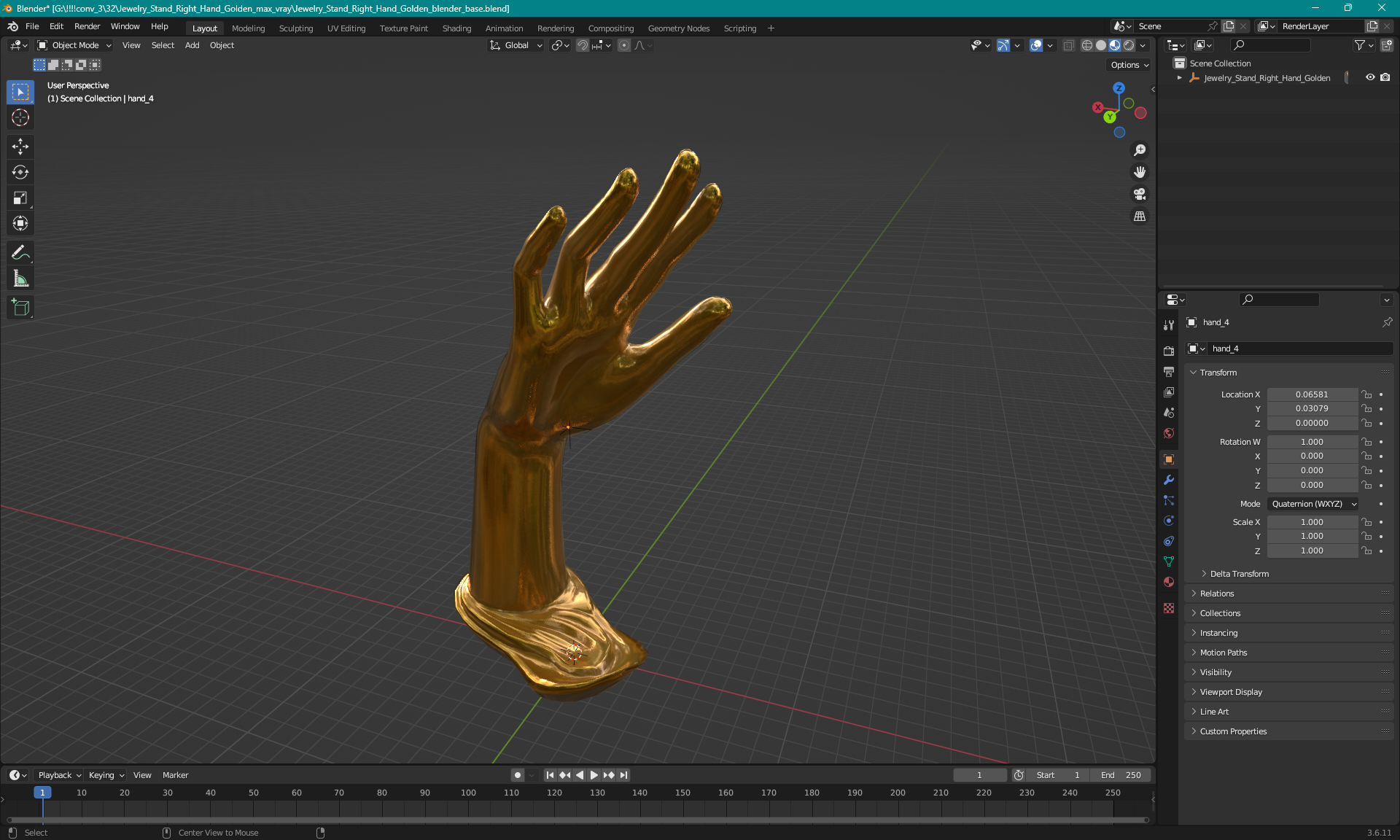 Jewelry Stand Right Hand Golden is a high quality, photo real 3d model that will enhance detail and realism to any of your rendering projects. The model has a fully textured, detailed design that allows for close-up renders, and was originally modeled in 3ds Max 2020 and rendered with V-Ray. Renders have no postprocessing!