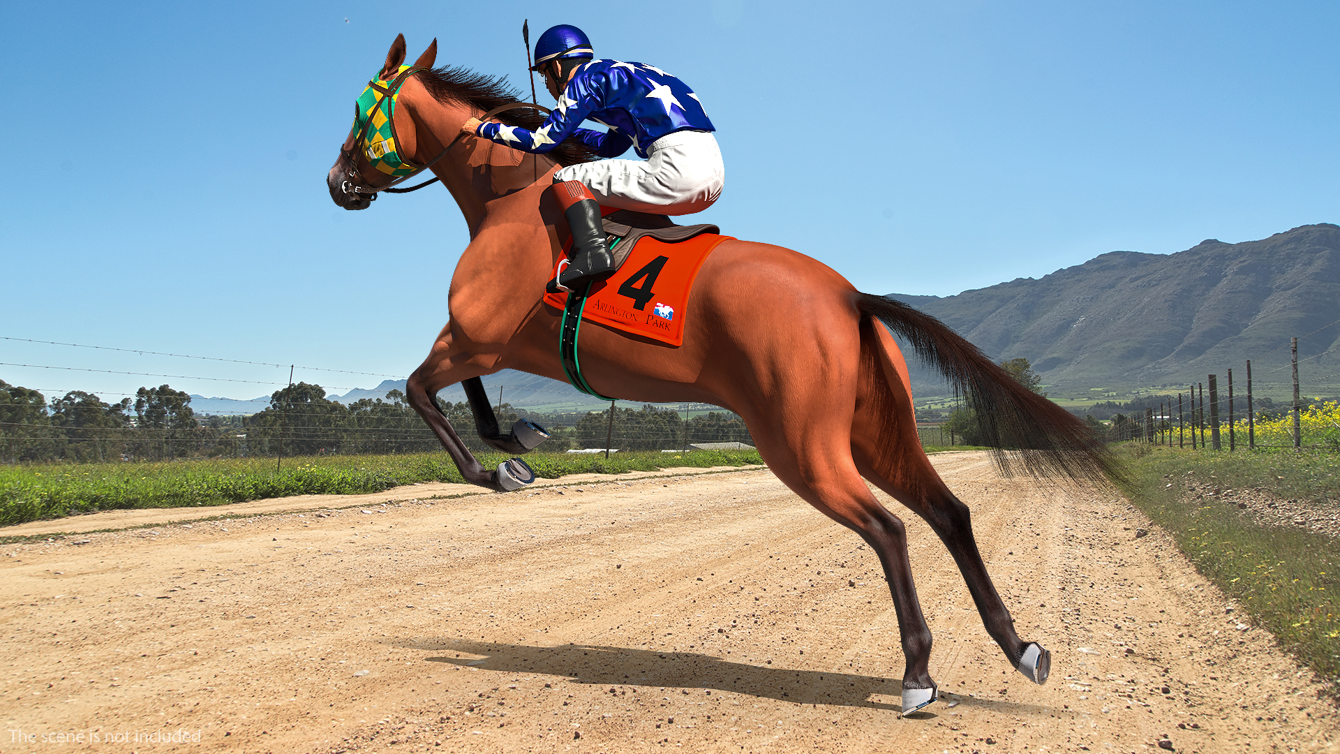 Jumping Bay Racing Horse with Jokey Fur is a high quality, photo real 3d model that will enhance detail and realism to any of your rendering projects. The model has a fully textured, detailed design that allows for close-up renders, and was originally modeled in 3ds Max 2020 and rendered with V-Ray. Renders have no postprocessing!