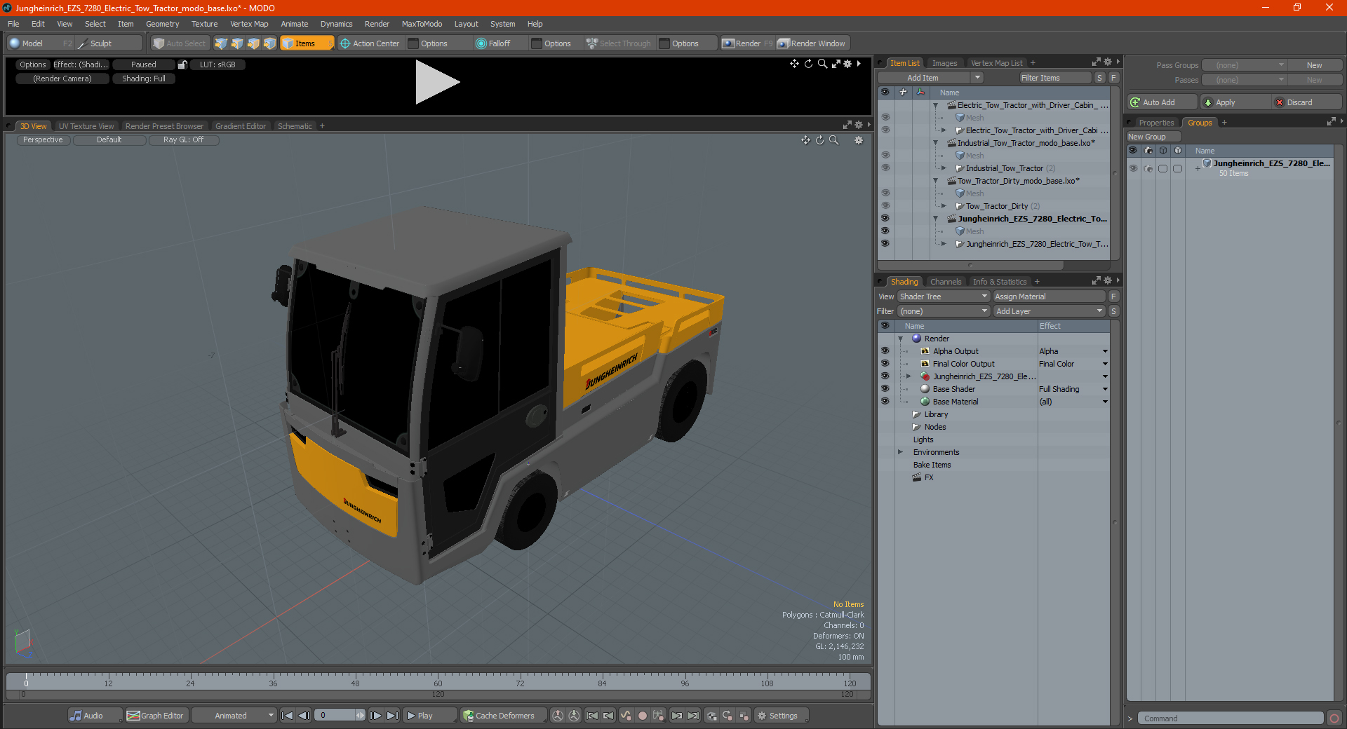 Jungheinrich EZS 7280 Electric Tow Tractor is a high quality, photo real 3d model that will enhance detail and realism to any of your rendering projects. The model has a fully textured, detailed design that allows for close-up renders, and was originally modeled in 3ds Max 2020 and rendered with V-Ray. Renders have no postprocessing!