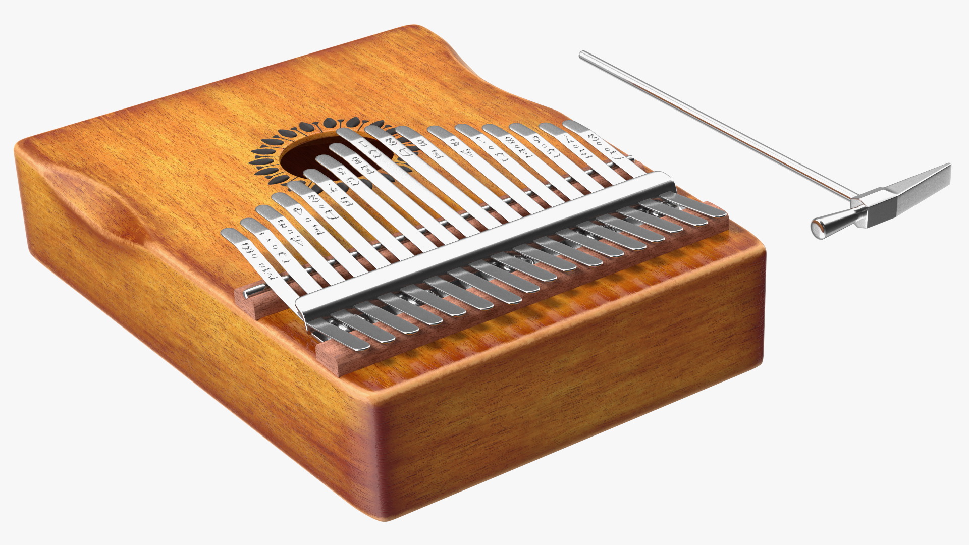 Kalimba of Maple Wood is a 3d model of handheld musical instrument with metal tines that are plucked to produce sound.