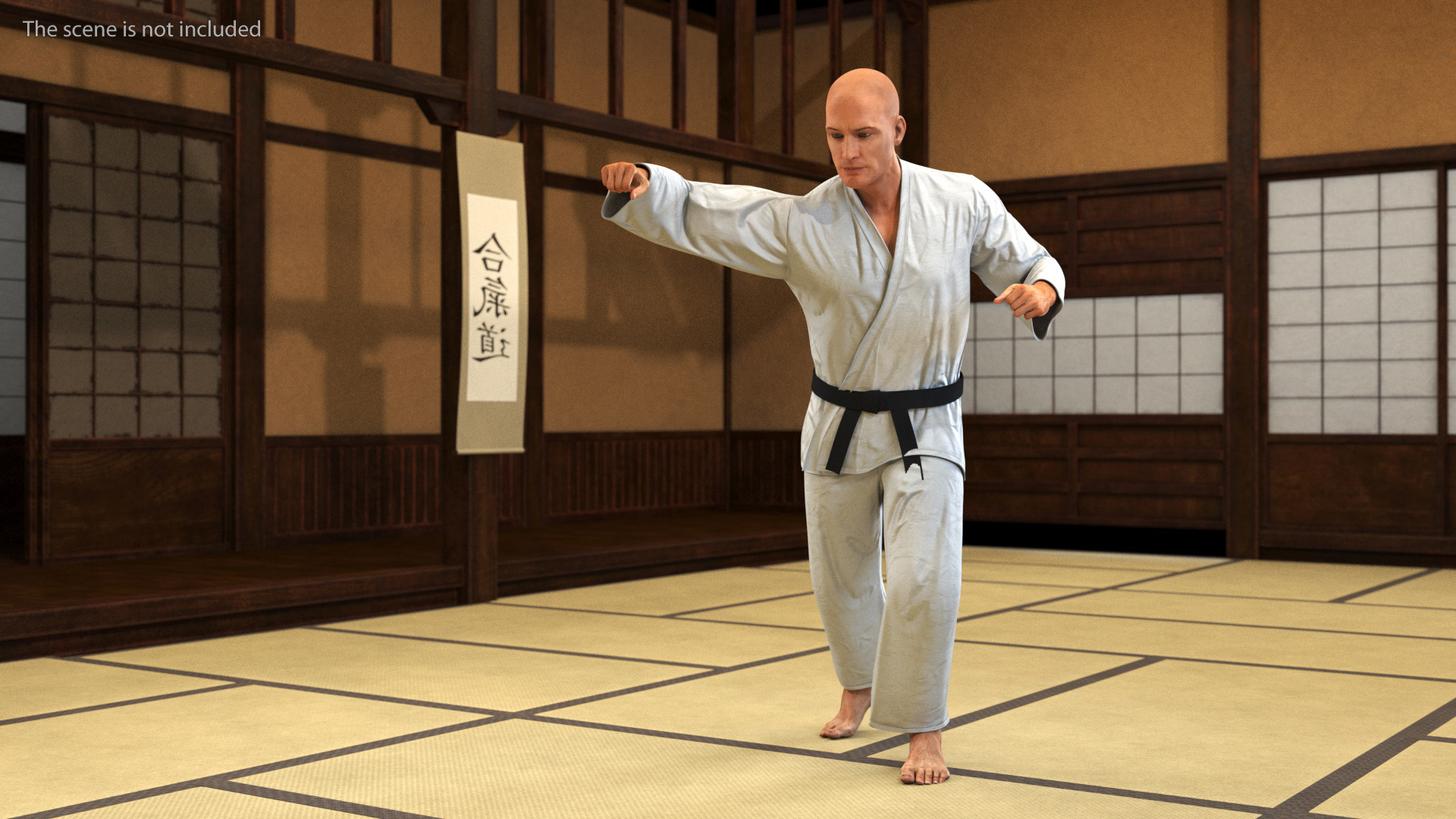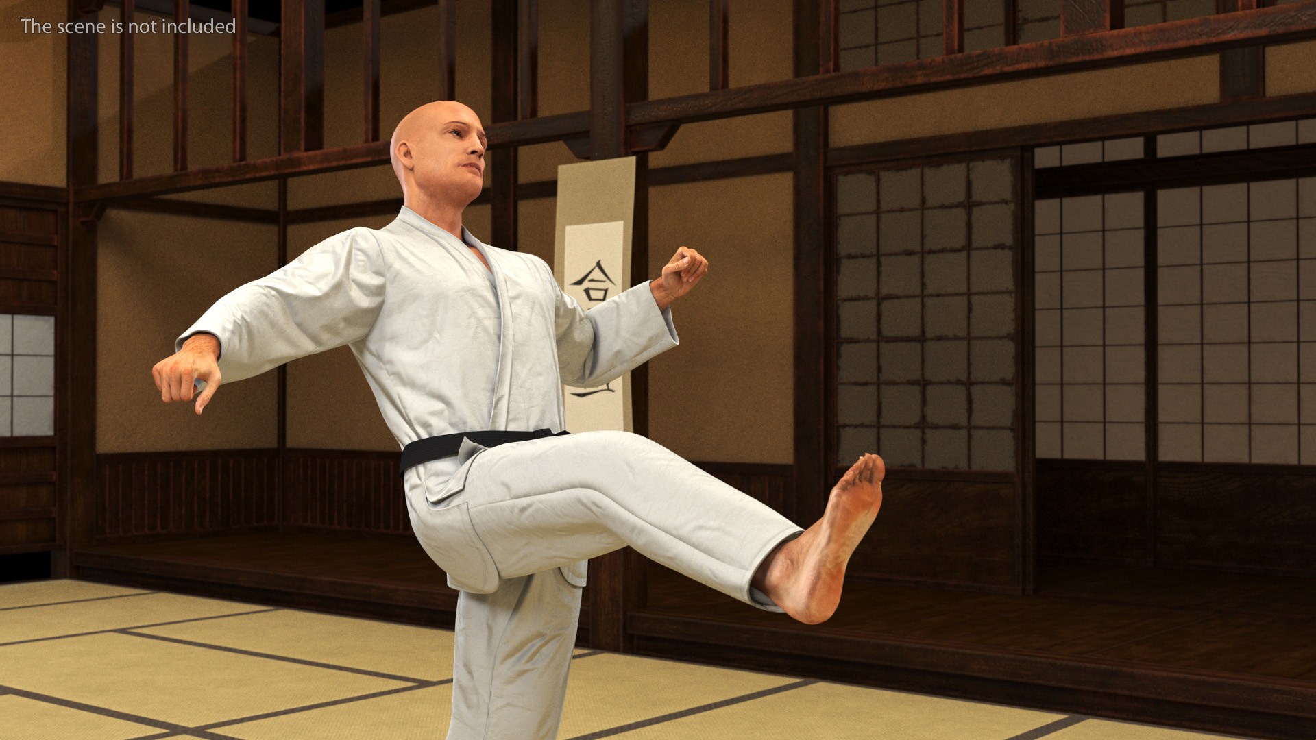 This model features a highly detailed gi with natural fabric folds and a prominent black belt symbolizing expertise. The rigged design allows for realistic movement and poses, making it ideal for action-oriented scenes. Attention to anatomy and texture enhances the model's authenticity and versatility.