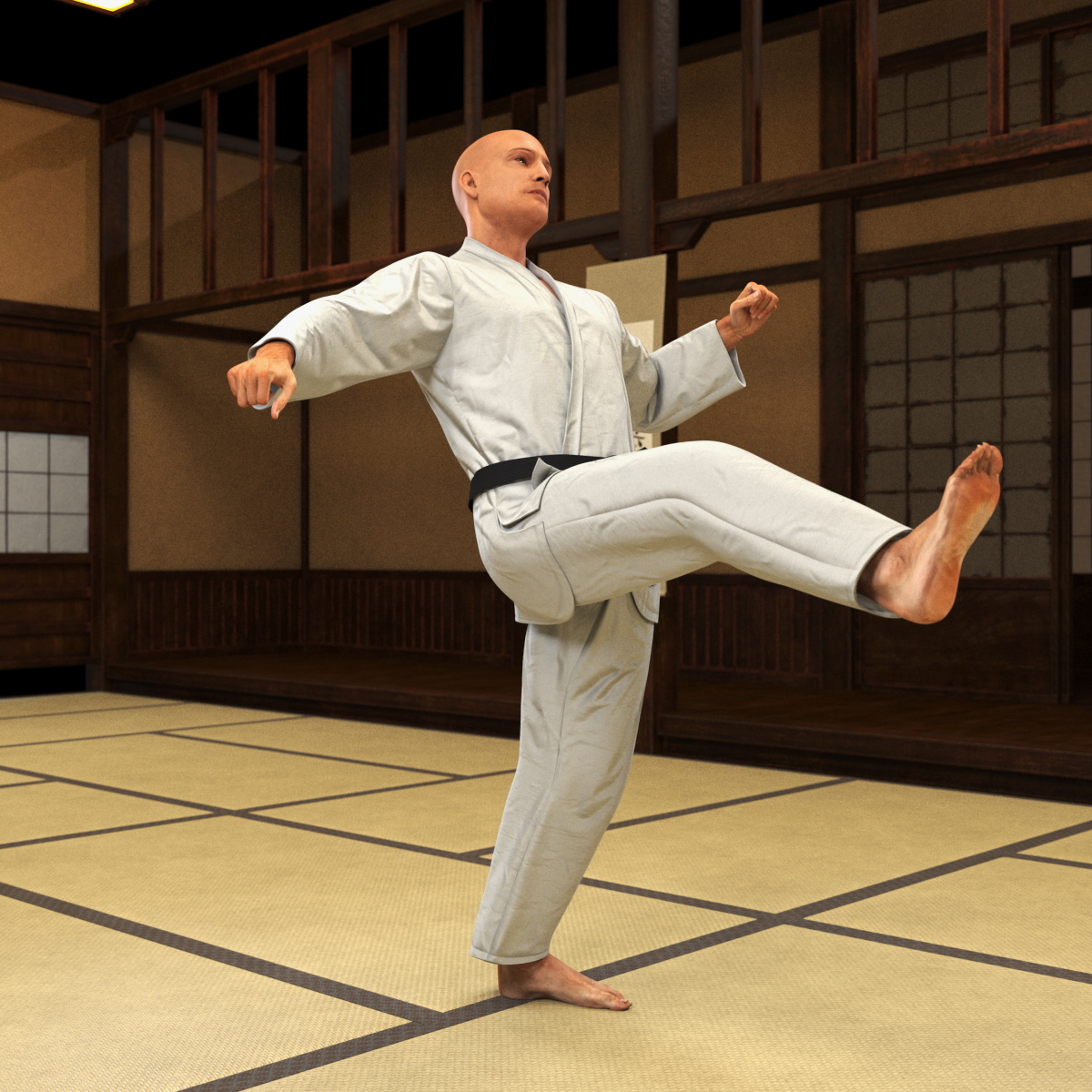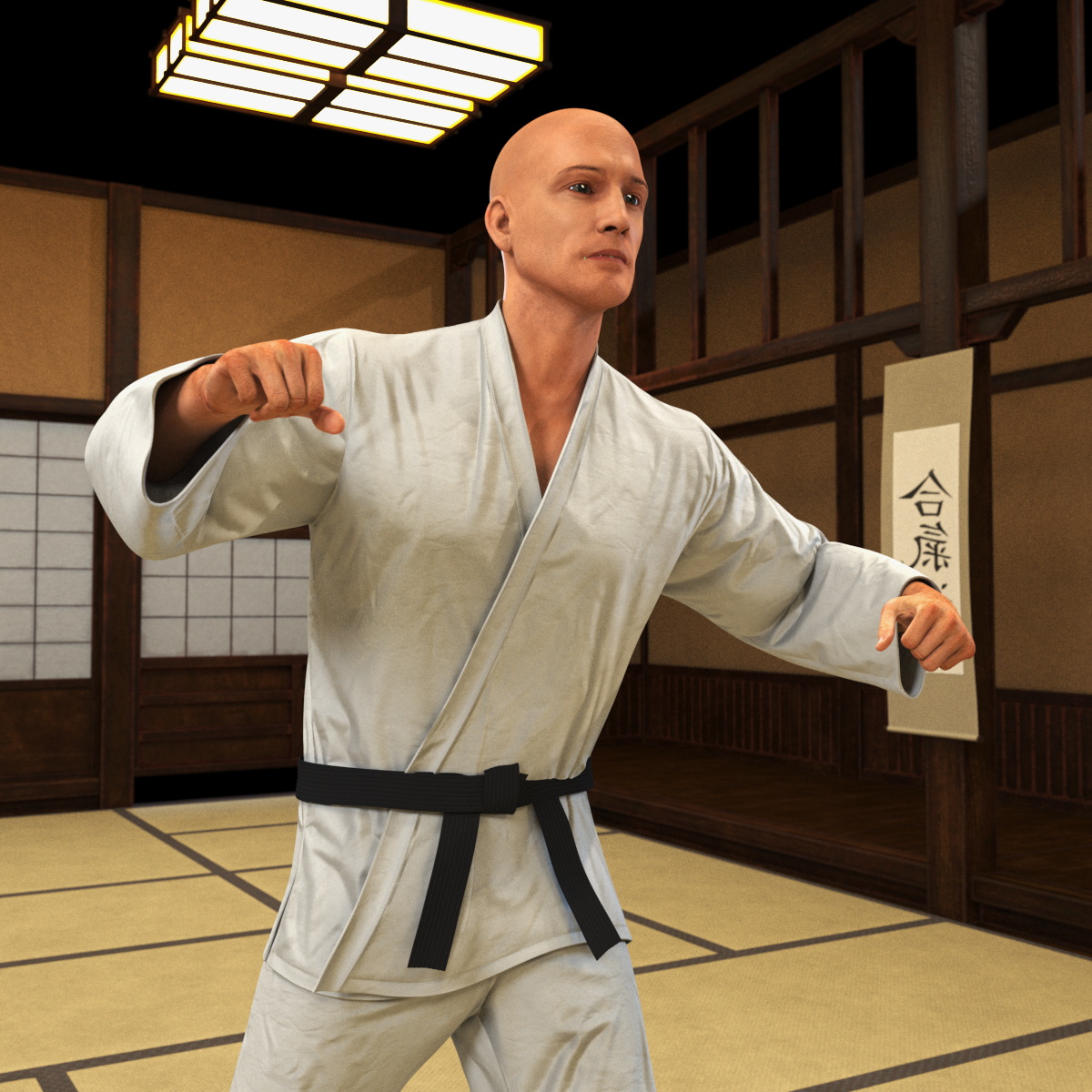 Karate Practitioner in Gi with Black Belt Rigged is a high quality, photo real 3d model that will enhance detail and realism to any of your rendering projects. The model has a fully textured, detailed design that allows for close-up renders, and was originally modeled in 3ds Max 2020 and rendered with V-Ray. Renders have no postprocessing!