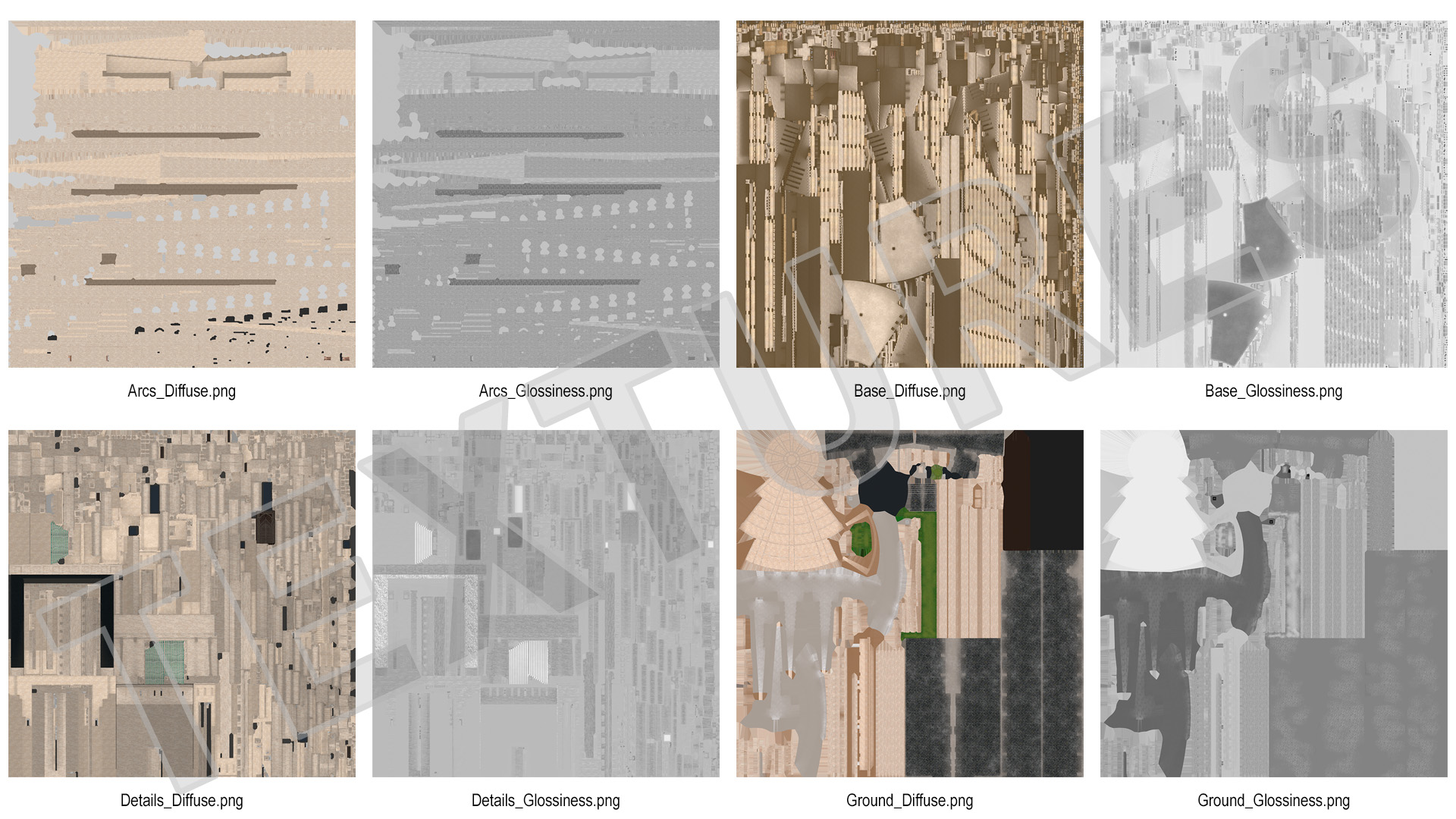 All textures and materials are included and mapped. (All colors can be easily modified.)