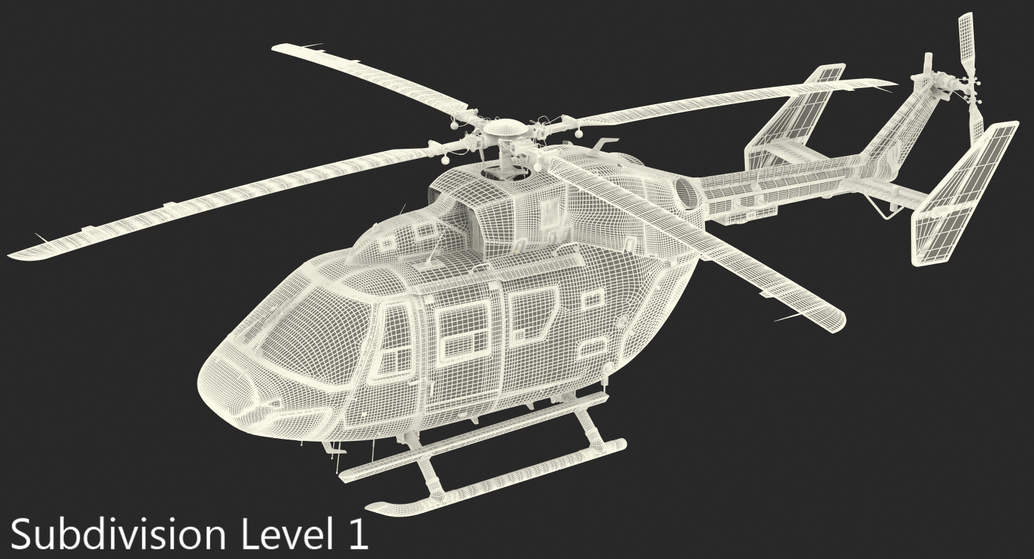 Kawasaki BK 117 Air Ambulance Helicopter Rigged is fully rigged and is ready to be animated. You can easily position it the way you need or animate it the way your project requires using helpers in 3D Studio Max. See the turntable to get an idea of how rigging works.