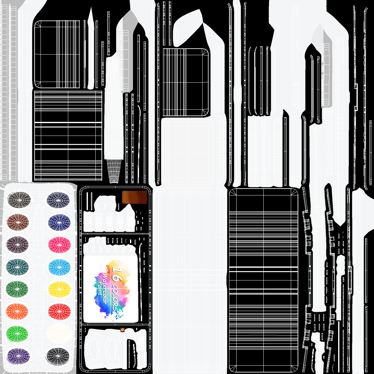 Kids Water Color Paints Set in White Box Fur is a high quality, photo real 3d model that will enhance detail and realism to any of your rendering projects. The model has a fully textured, detailed design that allows for close-up renders, and was originally modeled in 3ds Max 2020 and rendered with V-Ray. Renders have no postprocessing!